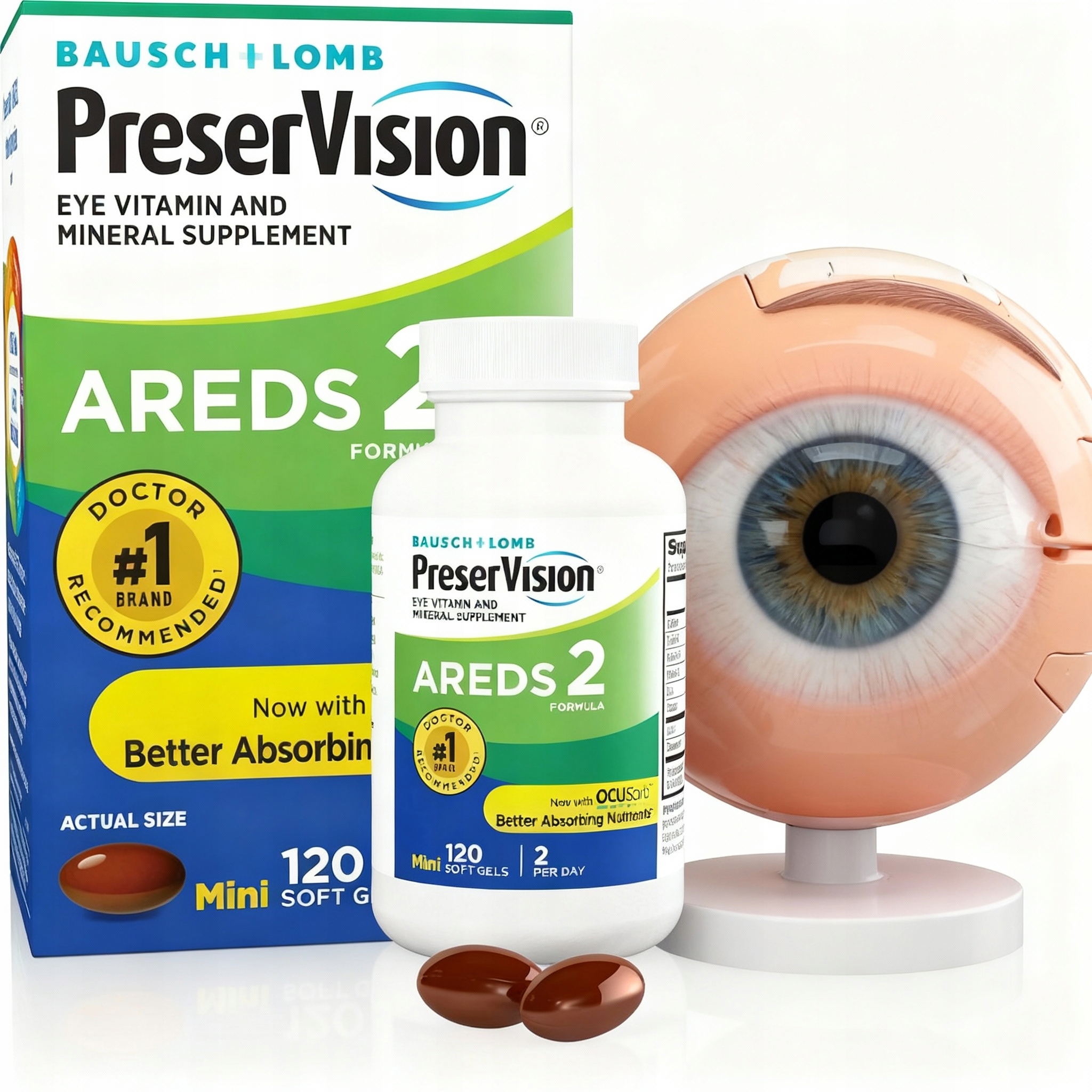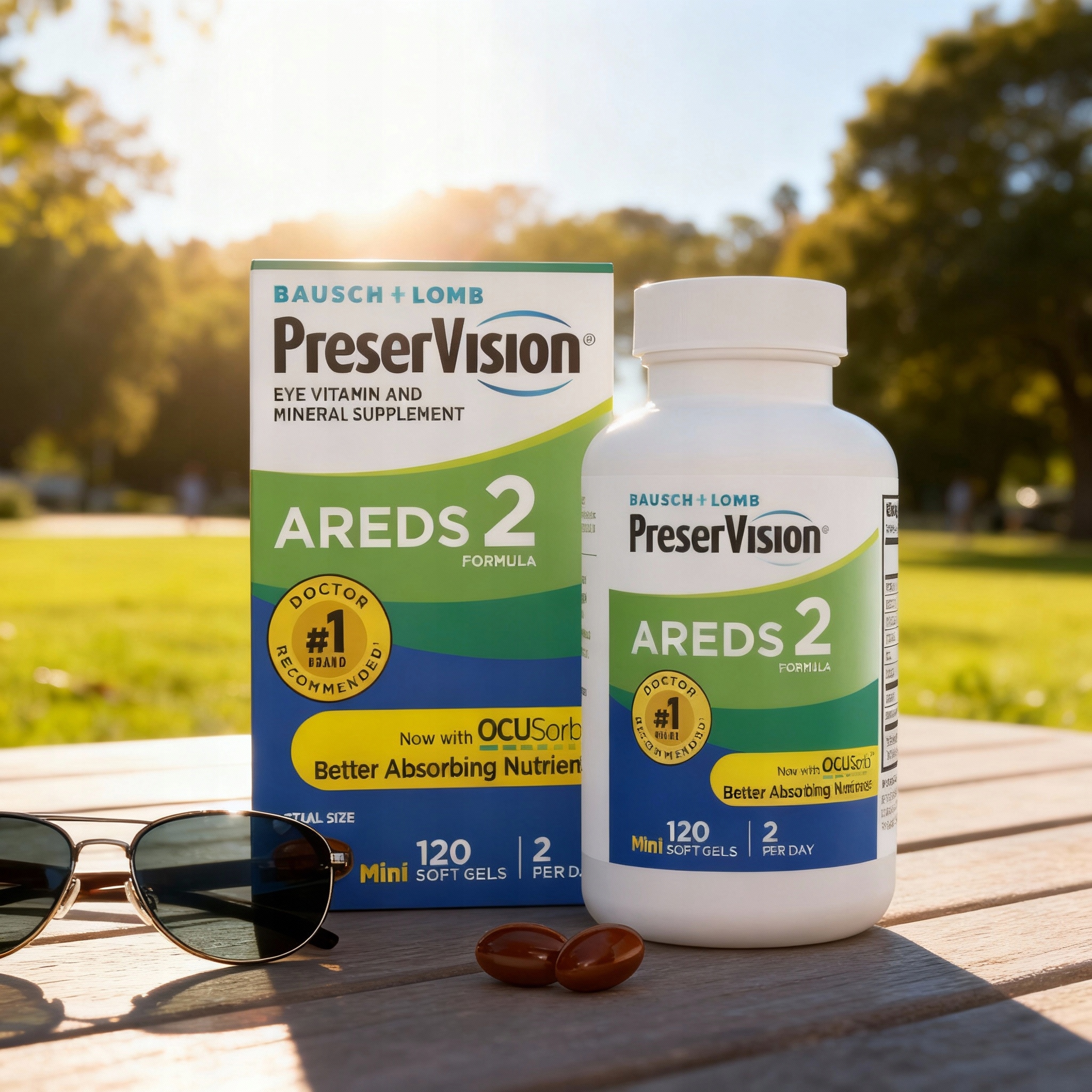 Добавка AREDS 2: PreserVision – марка витаминов для глаз номер один, рекомендованная врачами, содержащая лютеин и зеаксантин.