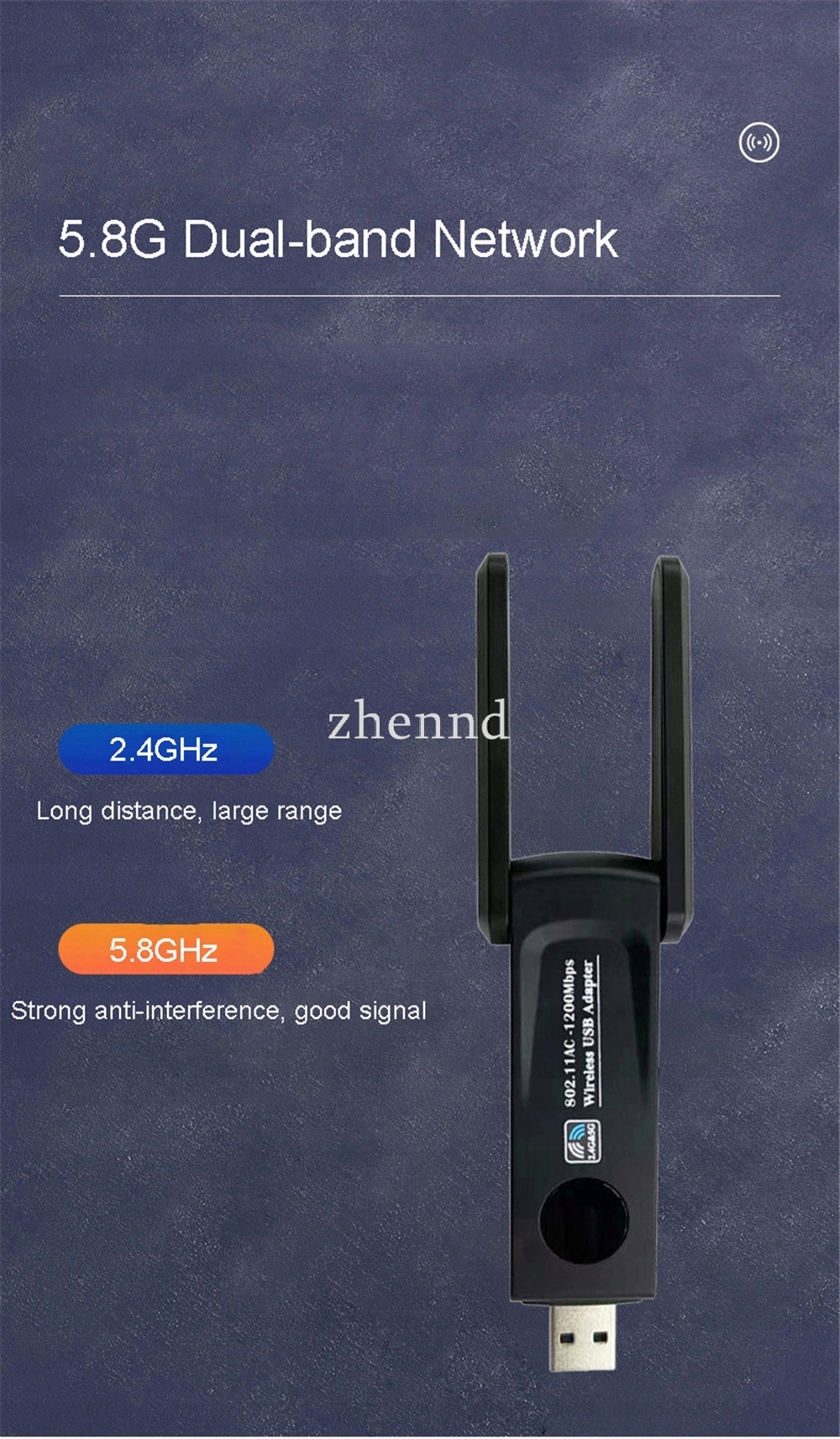 Двухдиапазонный беспроводной сетевой USB-приемник 5G WIFI со скоростью 1200 Мбит/с