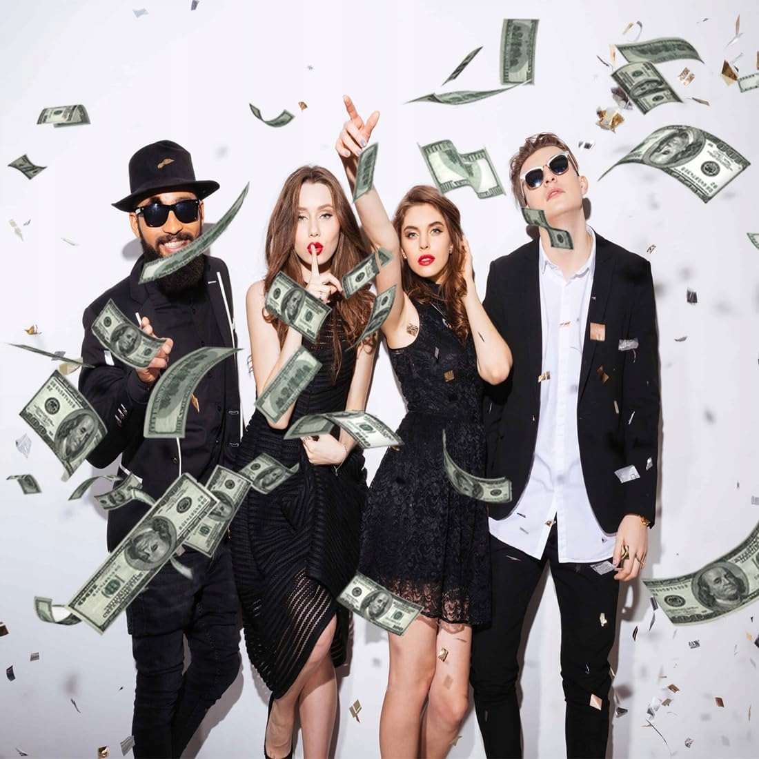 - цвета : имитационные доллары, черно -белые с деталями.