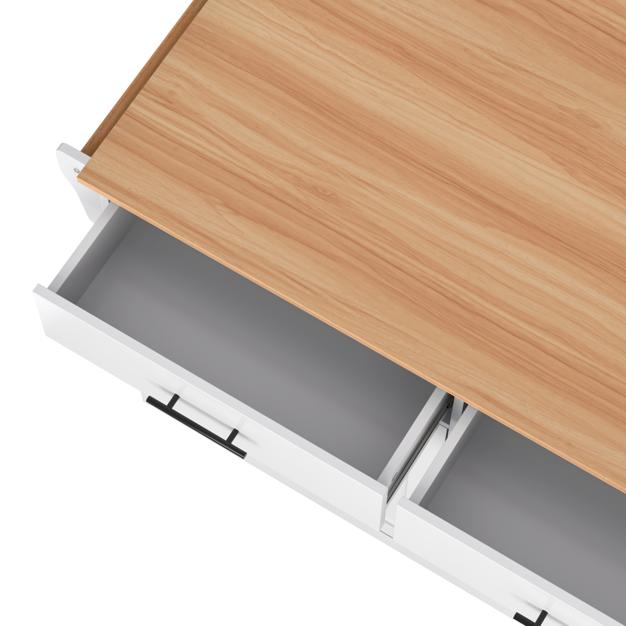 - 3. Решение, облегчающее организацию кухни. Два больших ящика предоставляют много места, а двойные двери предлагают отдельные отсеки для хранения различных категорий предметов. С обеих сторон также есть вешалки для полотенец, которые помогут сохранить кухню в чистоте и заказа.