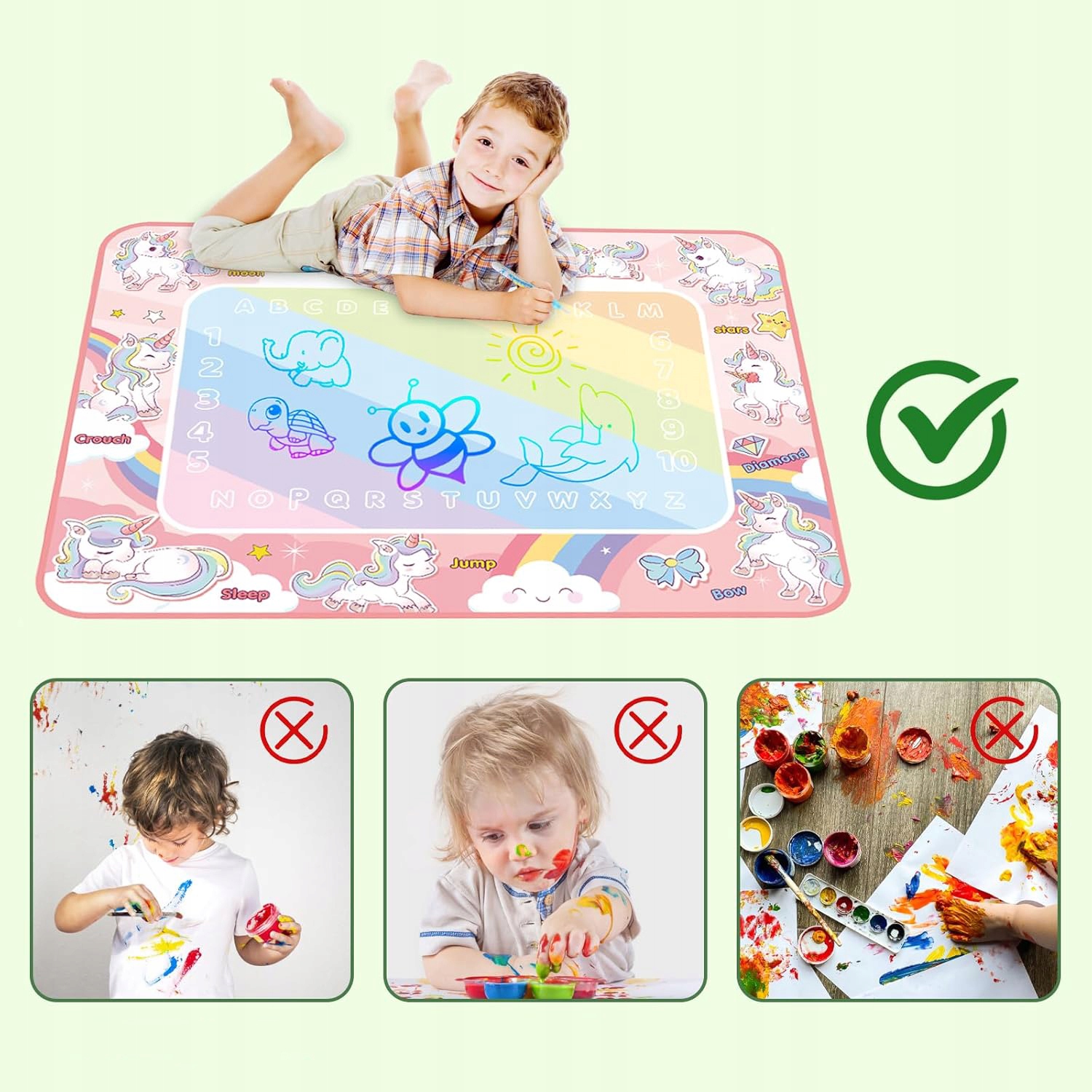 ✅ Коврик имеет размеры 120*90 см, что предоставляет детям широкое творческое пространство, чтобы они могли полностью использовать свое воображение и креативность. Окрашивает и предотвращает образование пятен на полах и стенах.