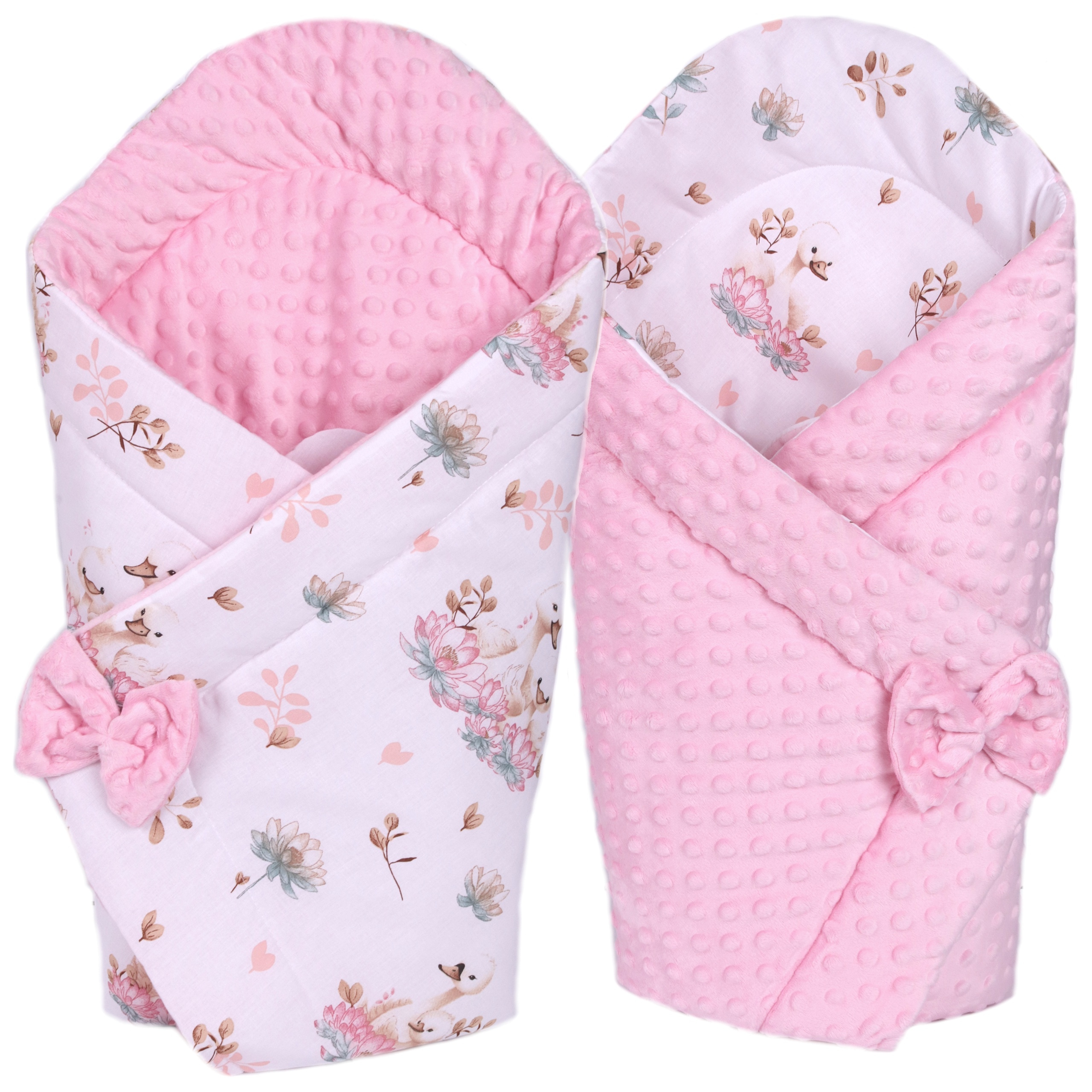 Minkyизготавливается из полиэфирных волокон, отличается бархатной окантовкой и необычайной мягкостью и нежностью. Именно поэтому шишку Минки используют даже для малышей. Материал гипоаллергенен, поэтому не вызывает раздражения кожи, особенно в первые месяцы жизни малыша. Плюш также отличается тем, что он фантастически сохраняет тепло и очень долговечен. Тогда ребенок чувствует себя в безопасности, в тепле, а слегка сжатый материал дает новорожденному ощущение, будто он находится в утробе матери. Самый популярный узор – флис в горошек.
