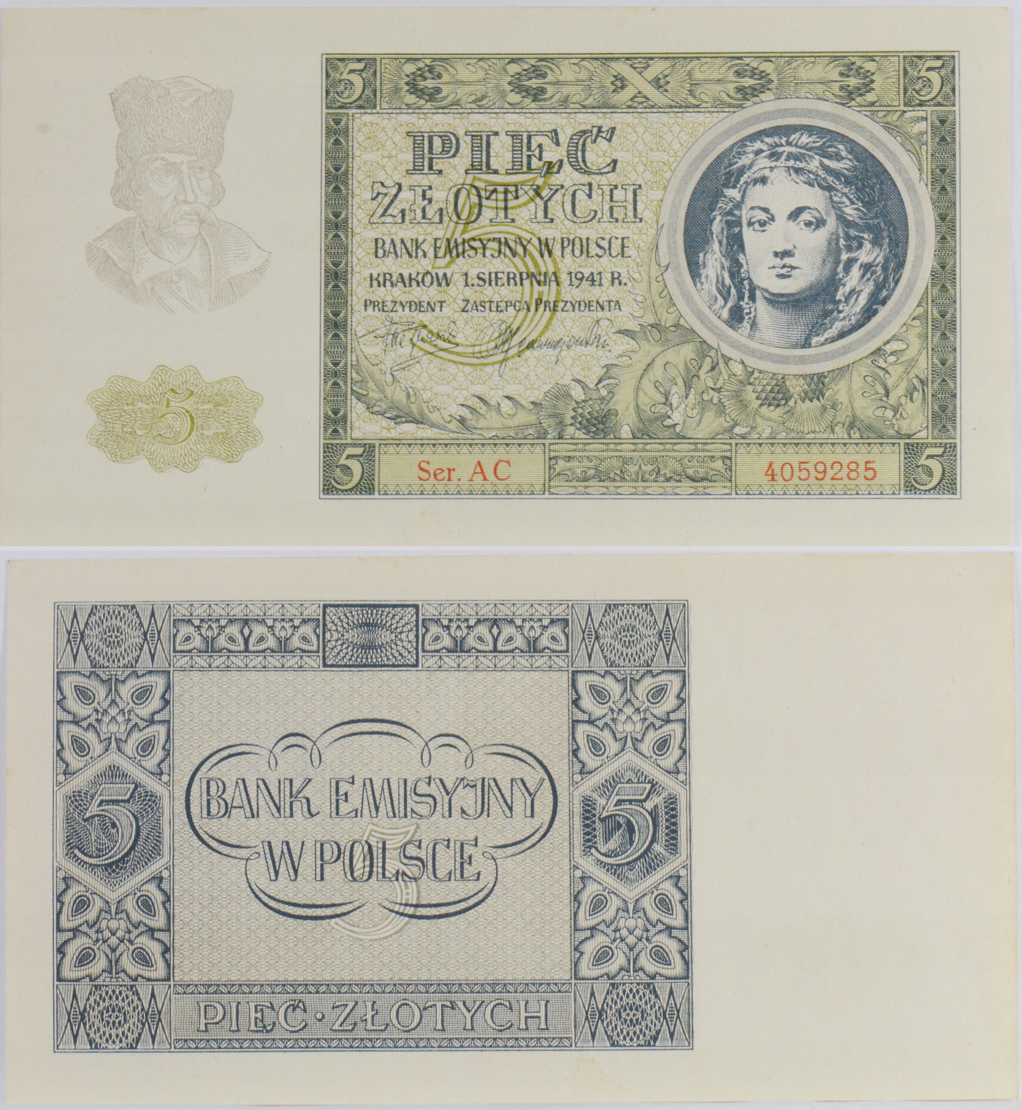 1247ZB. БАНКНОТА 5 PLN 1941 СЕРІЯ: AC UNC 27/09