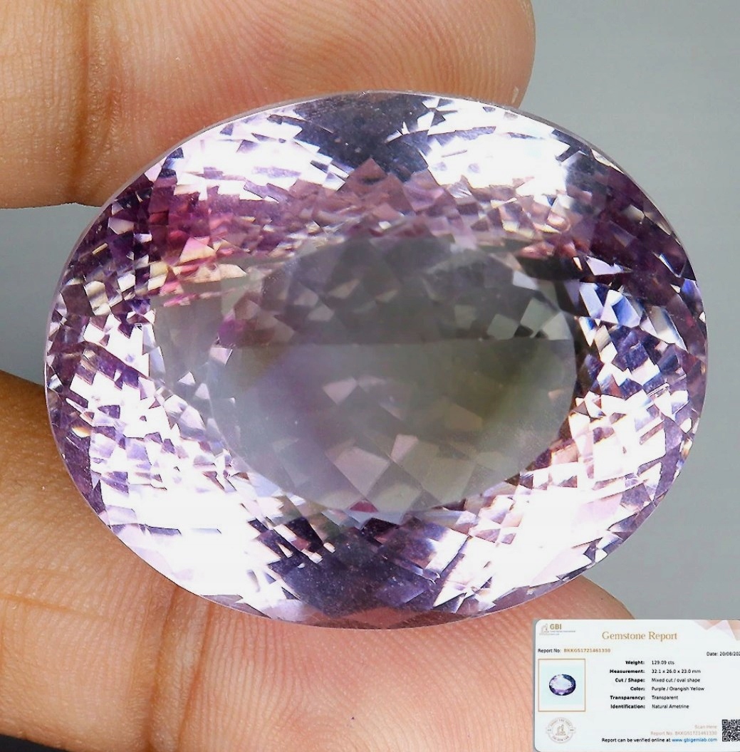 129.09ct Naturalny Ametryn, certyfikat.