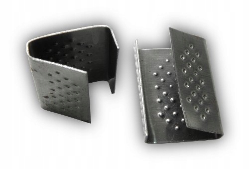 Листовой металл/сталь/гофрированные зажимы – используются для соединения полипропиленовых лент. Крепятся они с помощью стреппера, который зажимает застежку на ленте, что не позволяет застежке повредить товар. Ширина застежки должна соответствовать ширине ленты и весу упаковываемого товара.