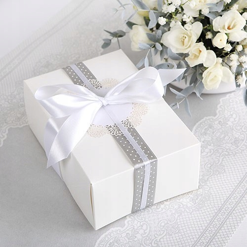 - эстетичная и элегантная коробочка для торта для гостей причастия из прочного белого картона