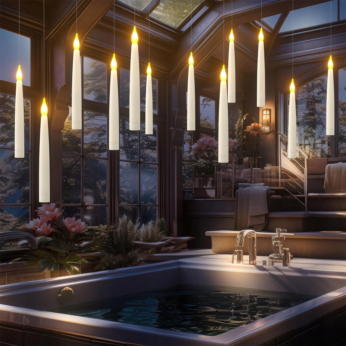 � Спасибо 1,5 метра линии рыбалки и липкие крючки, которые можно легко повесить свечи под потолком. Эти теплые белые, мерцающие плавучие свечи сделаны из капающего воска и выглядят такими реалистичными, как свечи с открытым пламенем , Кроме того, набор включает в себя 30-метровую запасную линию полной занятости.