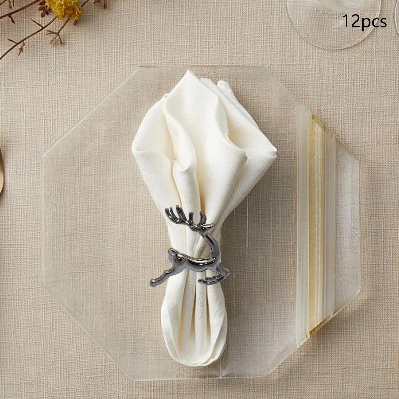[Широкие приложения]: Кольца для салфетки для оленей очень элегантны и очаровательны и являются очень хорошей крышкой для стола. Подходит для использования на вечеринках, банкетах, свадебных вечеринках и украшении стола.