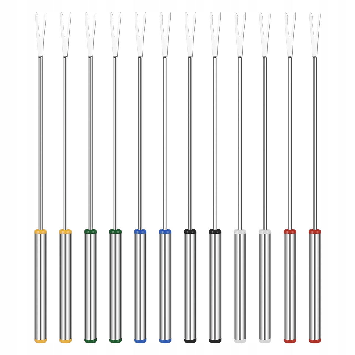 Изделие представляет собой набор из 12 вилок для фондю из нержавеющей стали диаметром 24 см. С его помощью вы сможете приготовить дома сырное фондю, шоколадный фонтан, а также обмакнуть клубнику и шоколад. Они достаточно сильны, чтобы не беспокоиться о том, что еда упадет. Отлично подходит для пикников и кемпинга.