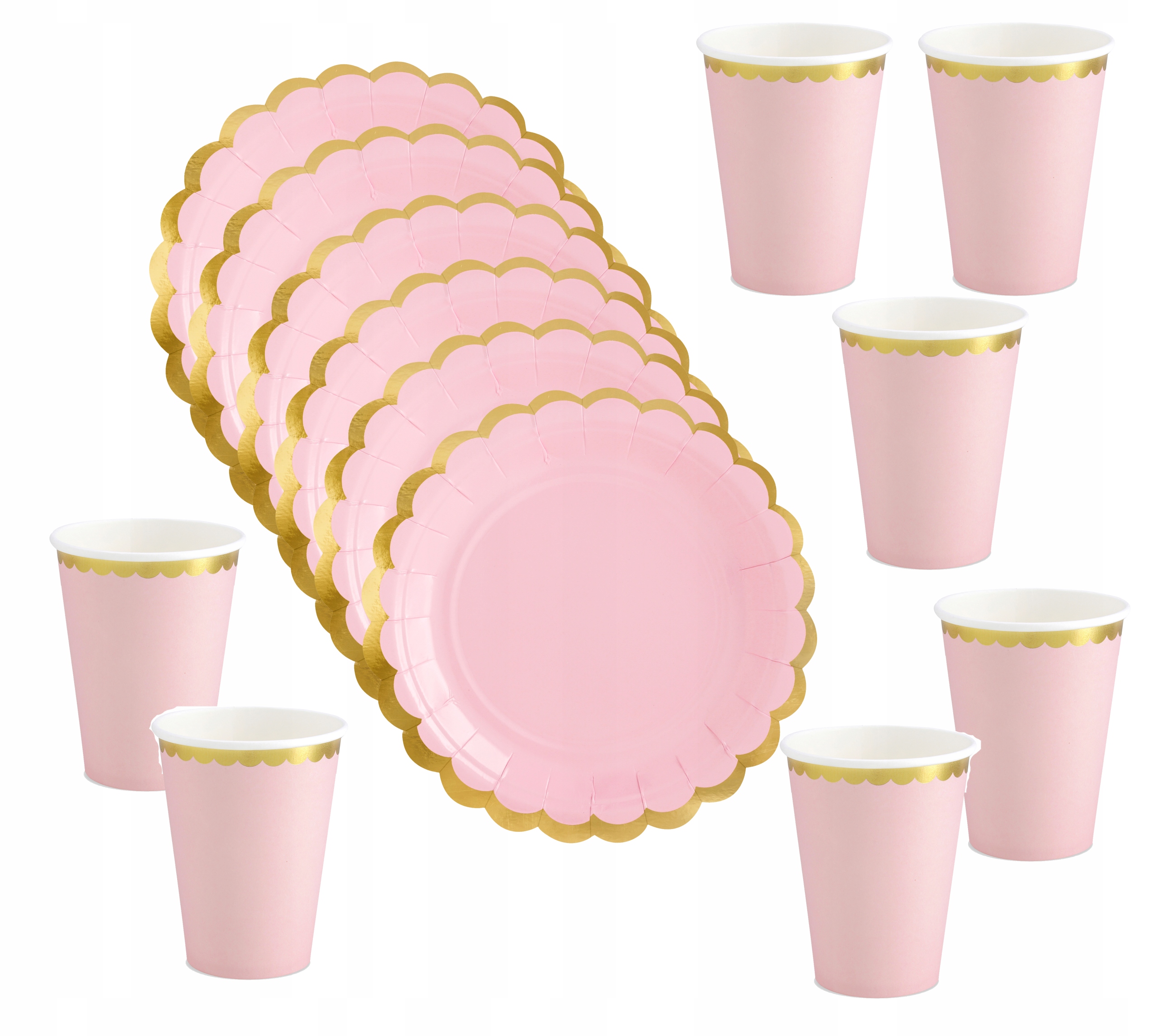 12шт. НАБІР ТАРІЛОК ДНЯ НАРОДЖЕННЯ ОДНОРАЗОВИЙ СТАКАНОК РОЖЕВИЙ
