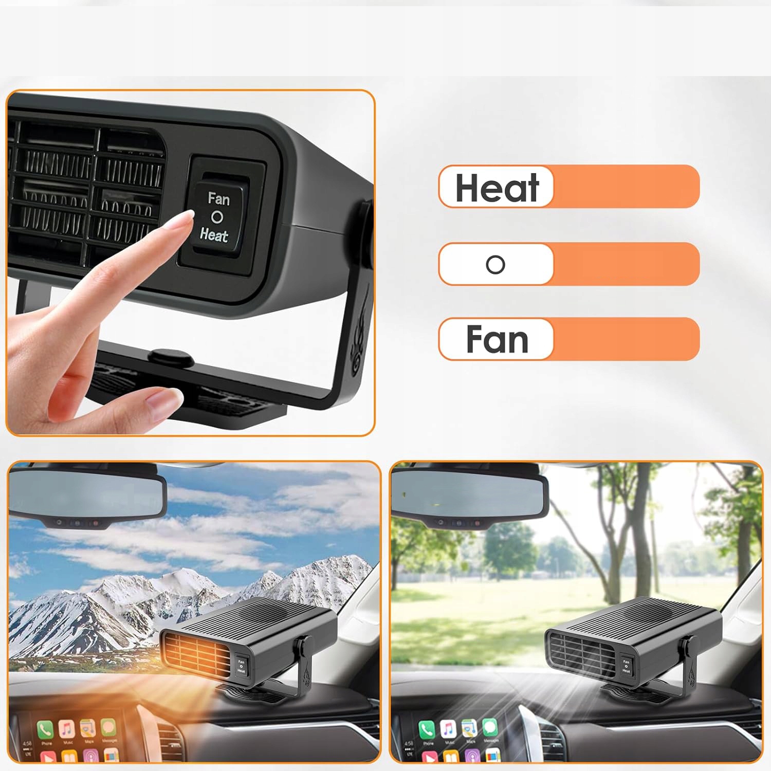 🔥 【Теплый подарок】Портативный автомобильный тепловентилятор Подходит не только для личного использования, но и станет прекрасным подарком для семьи или друзей. Холодной зимой или жарким летом он может оказать практическую помощь и сделать ваше вождение более комфортным.