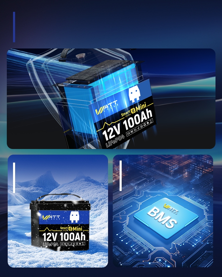 【 Миниатюрный размер, макс. Мощность 】: Батарея WattCycle 12 В, 100 Ач MINI Bluetooth LiFePO4, обеспечивающая 11 % мощности по весу и 39 % проверенной сознательной работы в стиле Группы 24, при этом ее электроэнергия передается на операции мощностью 195 Втч. /L!