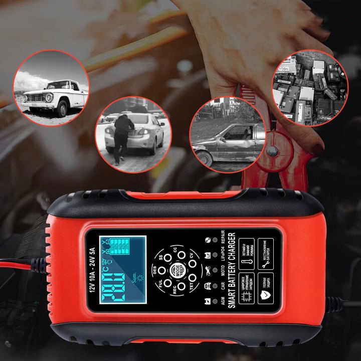 Автомобильное зарядное устройство 10A: быстрое 12 В/10А и 24 В/5А зарядные устройства для автомобильных батарей загружаются намного быстрее, чем 8A или 6A, автомобильные зарядные устройства. Комбинация быстрой и вспомогательной зарядки помогает вам сэкономить аккумулятор