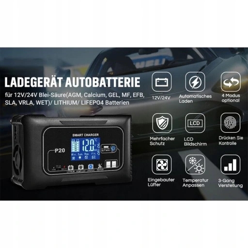 lit, lifePo4, свинцовая кислота (AGM / Gel / EFB, MF, Mr. Battery, VRLA, SLA, влажные клетки ...) Для автомобилей, грузовиков, мотоциклов, внедорожников, гольф -тележек, сельскохозяйственных транспортных средств, водных скутеров и т. Д. V. LifePo4: 14,6 В / 29,2 В.
