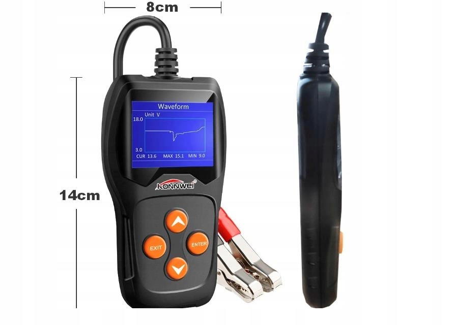 Это устройство благодаря Advanced Electronics имеет возможности, сравнимые с дорогими профессиональными тестировщиками семинара. И даже лучше. поляки Плохое соединение не сломает тестер/аккумулятор/автомобиль. Нет необходимости полностью заряжать батарею. Благодаря этому вы оцените, следует ли заменить батарею