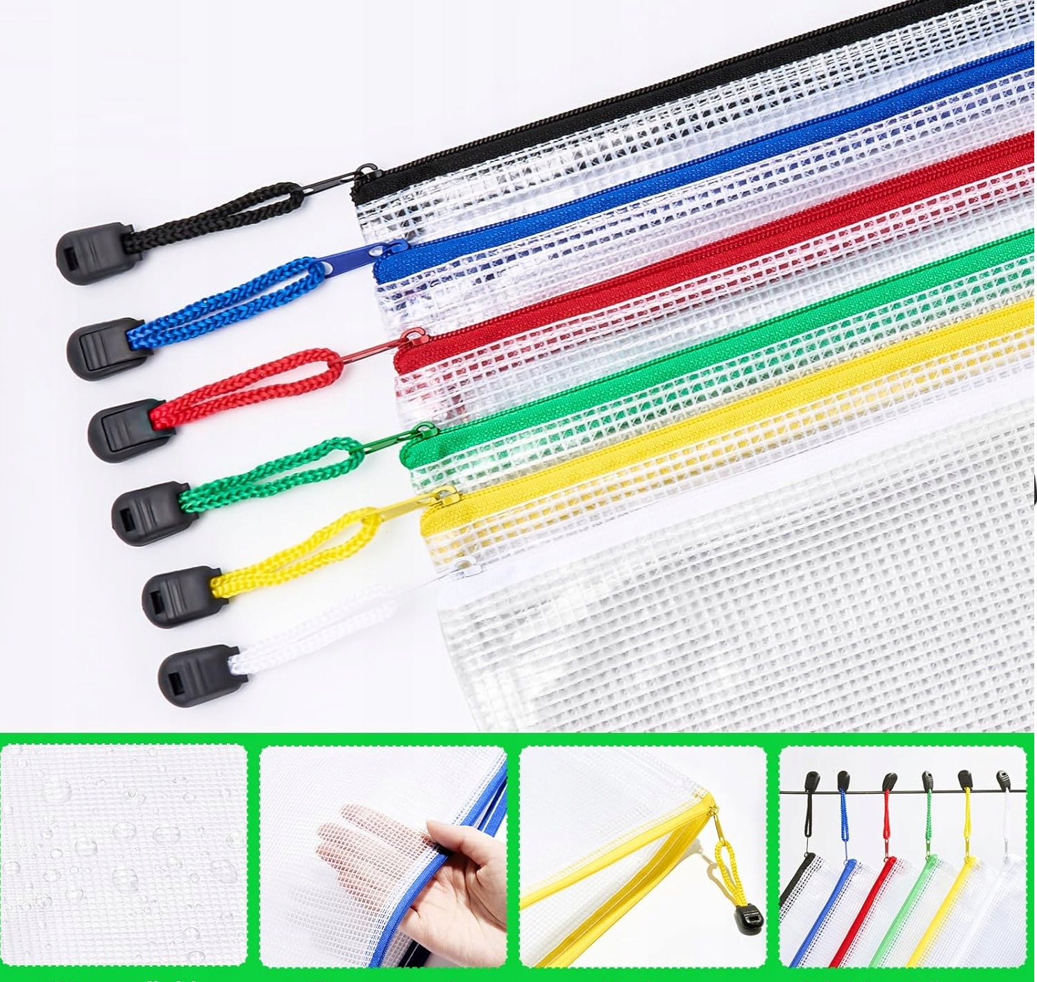 Сумка для документов А4 на молнии, 12 предметов, водонепроницаемая сумка для документов, сетчатая сумка на молнии, для бумаги, письменных принадлежностей, косметики