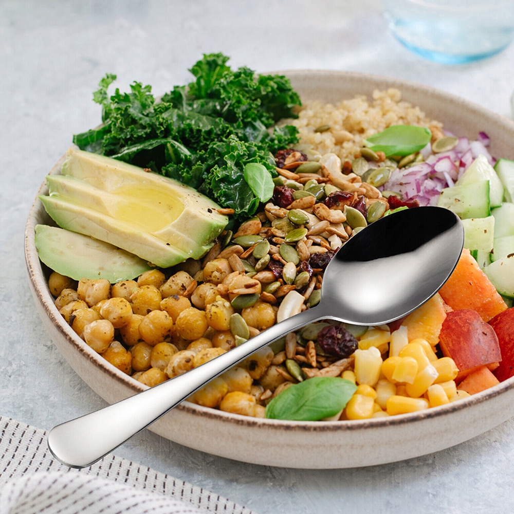 12x столовые ложки кухни из нержавеющей стали. Кухонный обед может быть вымыт в плавной ручке с гладким краем для посудомоечной машины h1>