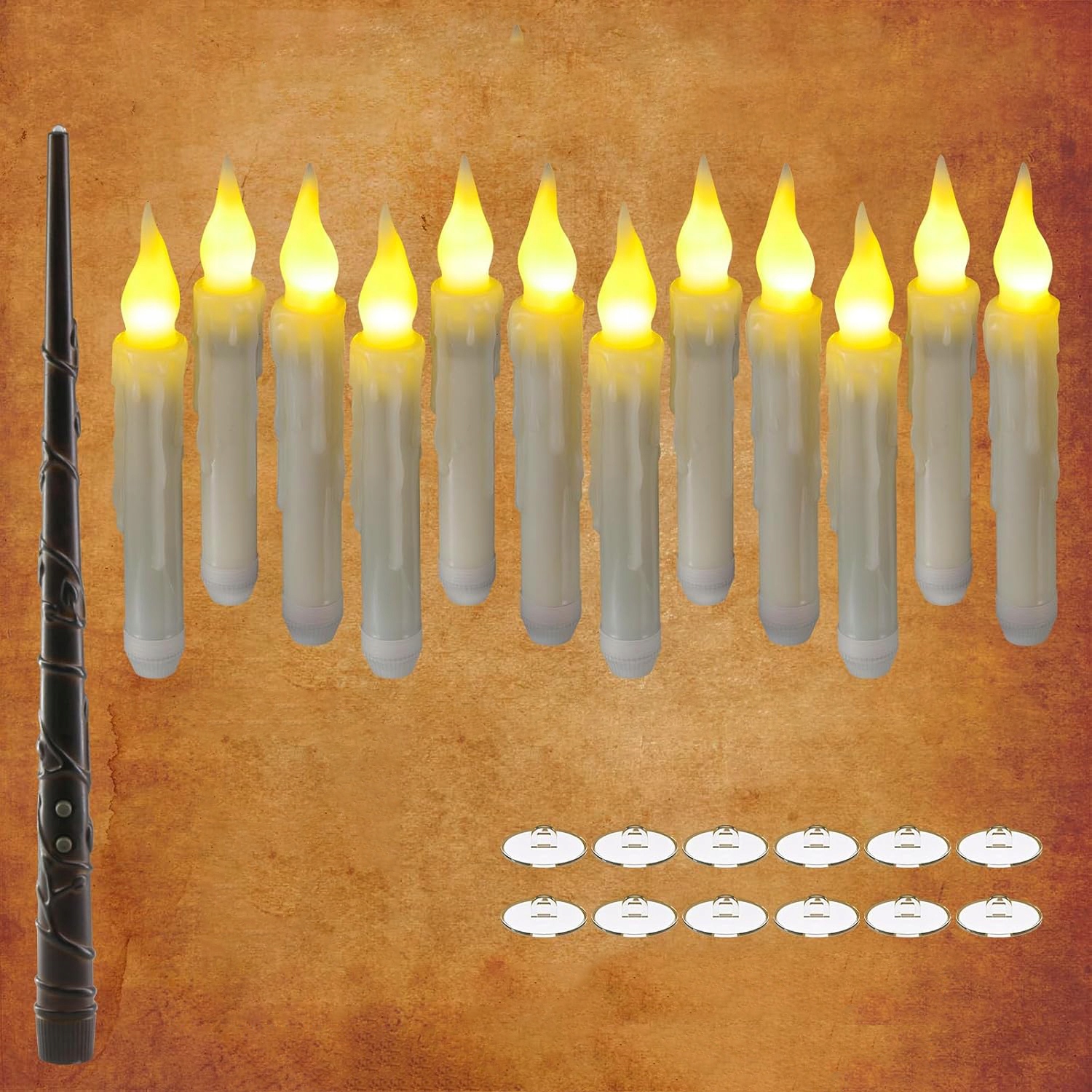 - -🕯 Содержание упаковки: вы получите 12 светодиодных конусов, 12 самоклеящихся крючков, пульт дистанционного управления с волшебной палочкой и 20-метровый ролик кабеля. Присоединяйтесь к волшебному миру!