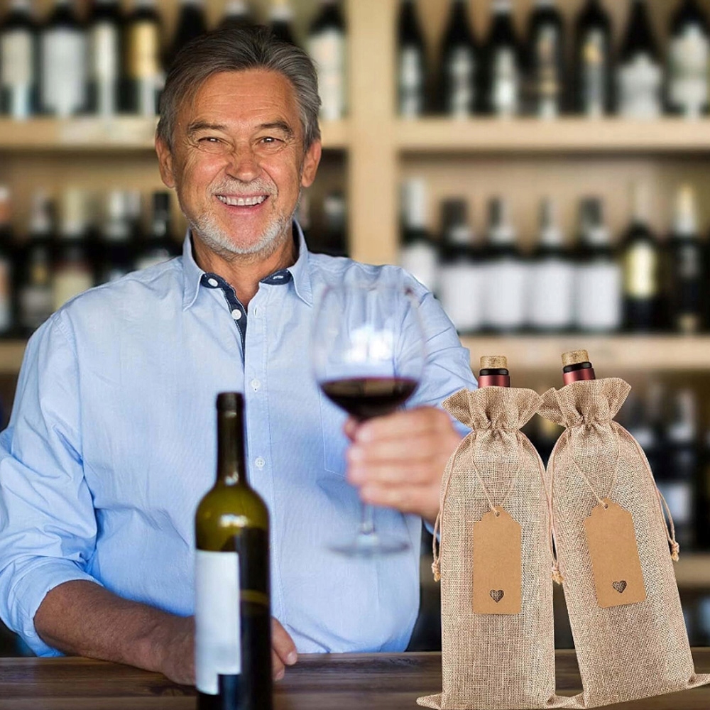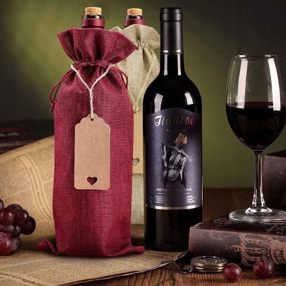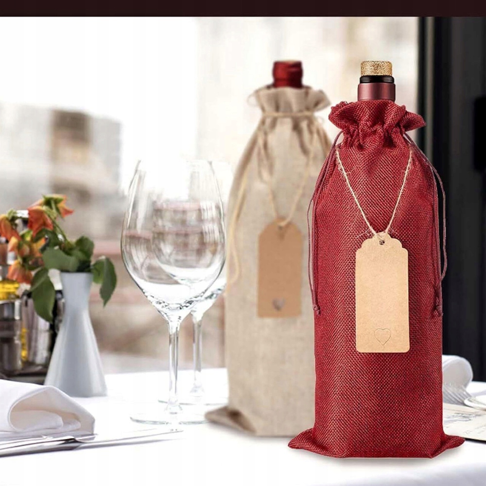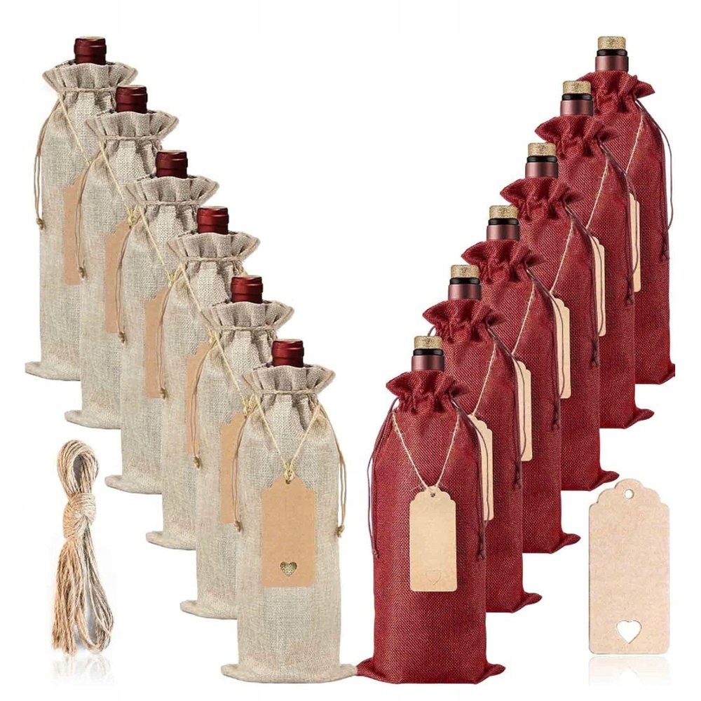 12X ДЖУТОВІ МІШКИ ДЛЯ ВИНА КРИШКИ ДЛЯ ВИНОЇ ПЛЯШКИ З БИРКАМИ НА ШНУРКАХ