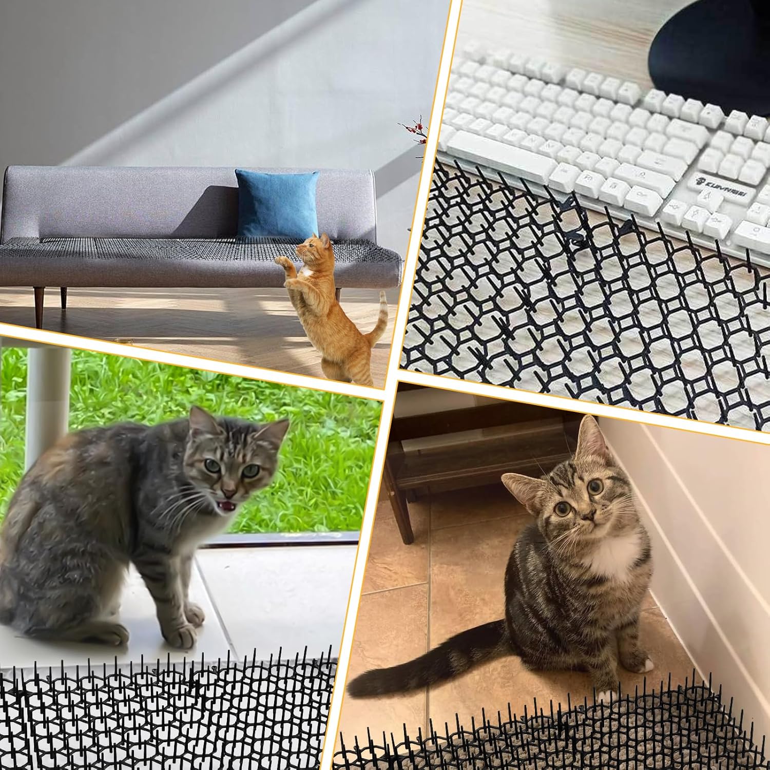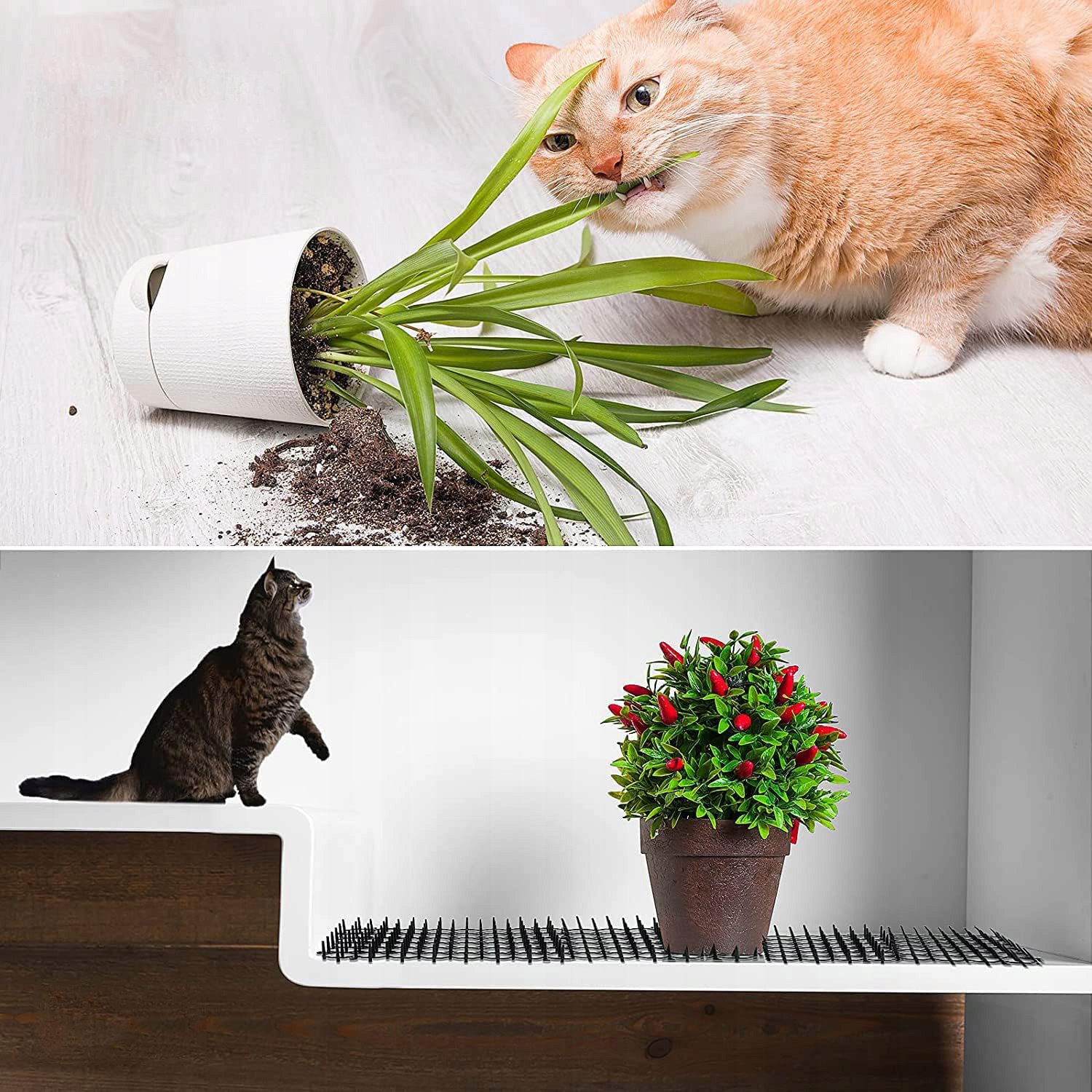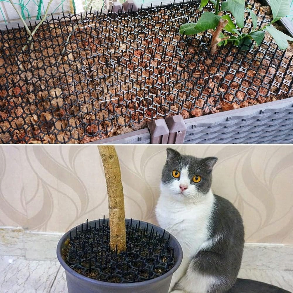 🐱 Конструкция, безопасная для домашних животных. Нетоксичный пластиковый барьер для домашних животных с шипами может эффективно блокировать кошек и не причинит вреда домашним животным. Она пригодна для повторного использования и переработки и обеспечивает двойную защиту домашних животных и растений.