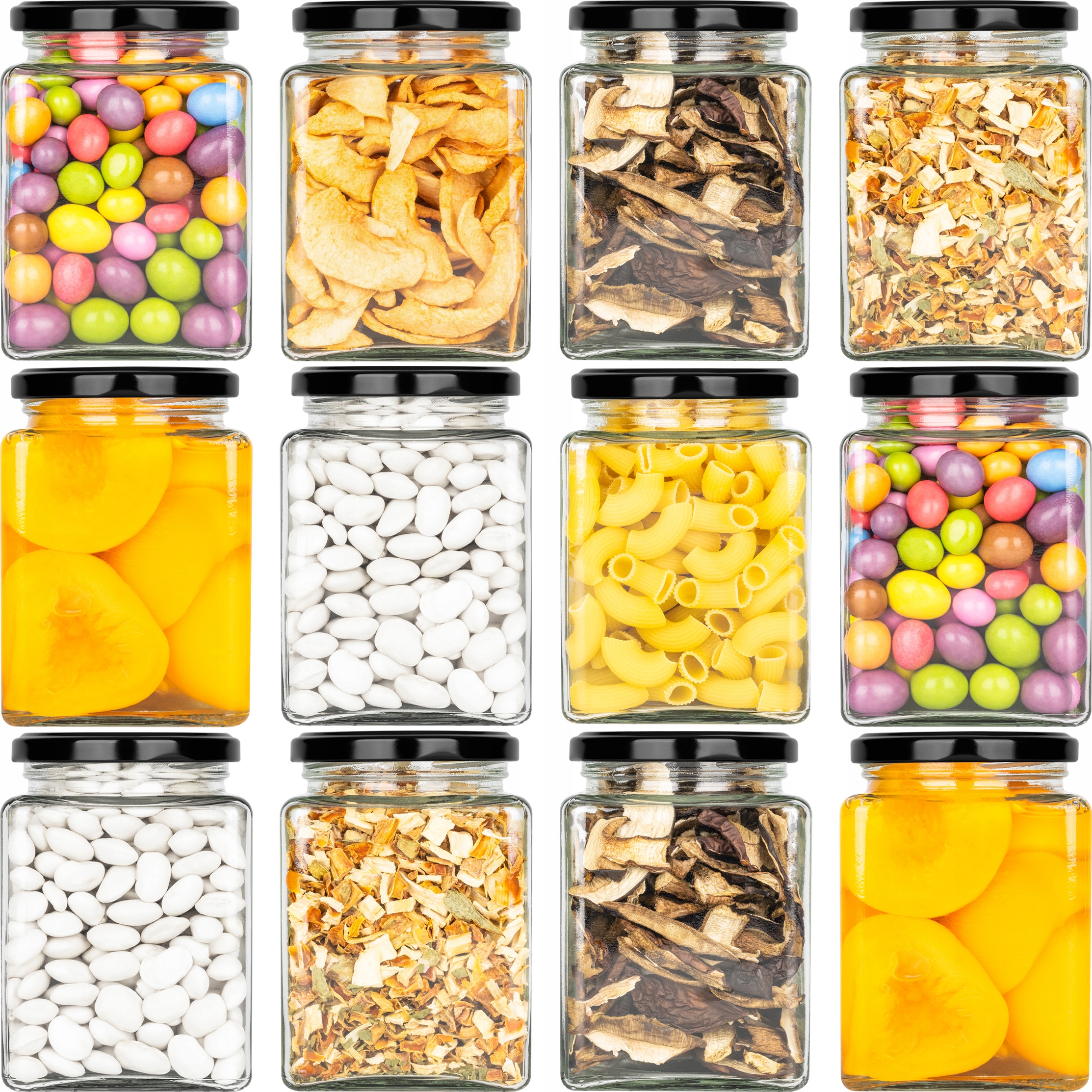 установка 12x стеклянная банка с черной квадратной крышкой Hoga 500 мл h1>
