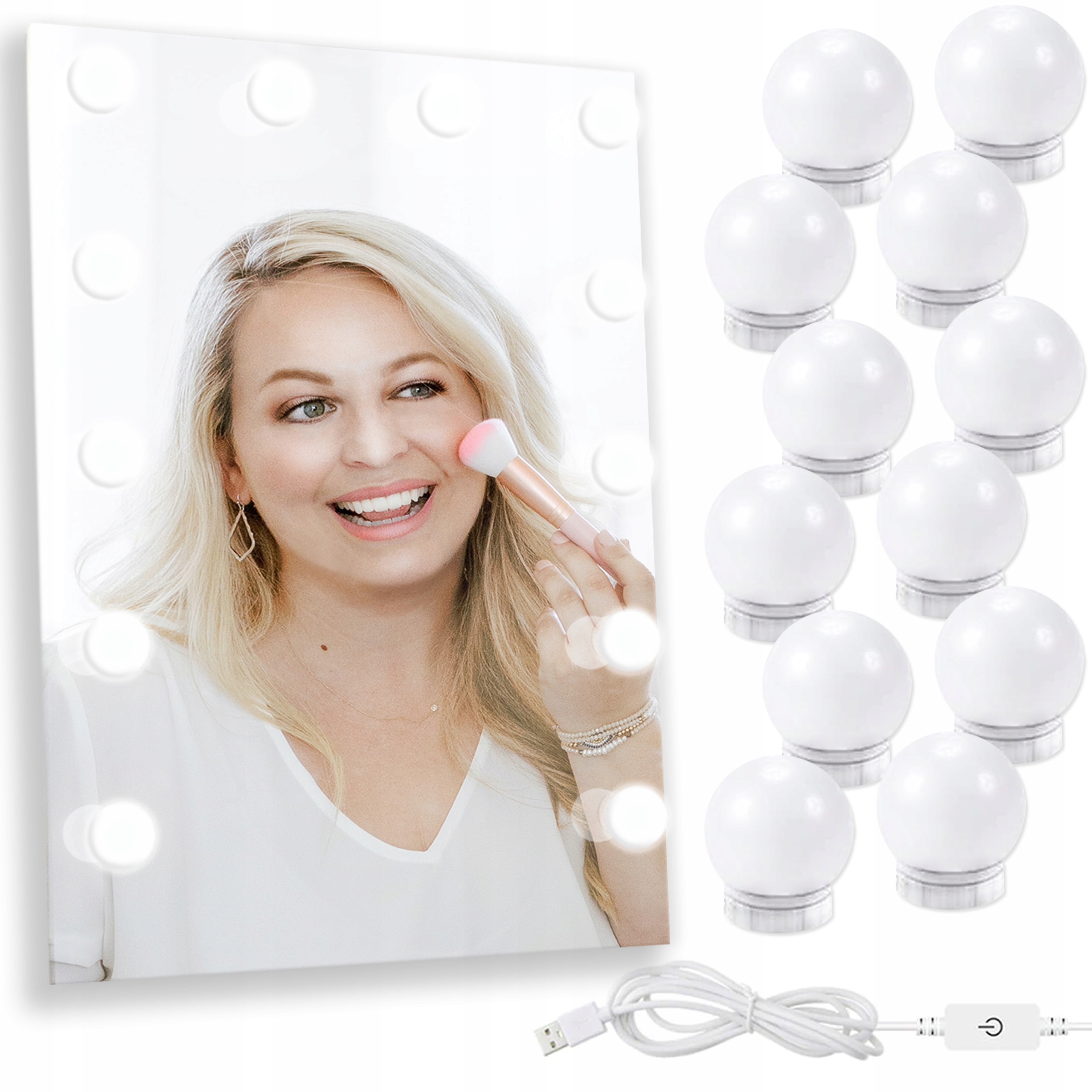 Энергосберегающие светодиодные лампы украсят любой туалетный столик! Простые в установке, легкие лампы облегчат нанесение идеального макияжа в любое время суток. Комплект из 12 светодиодных ламп идеально подойдет для ванной, спальни, а также детской комнаты, в качестве украшения и дополнительного освещения во время фотосессий.