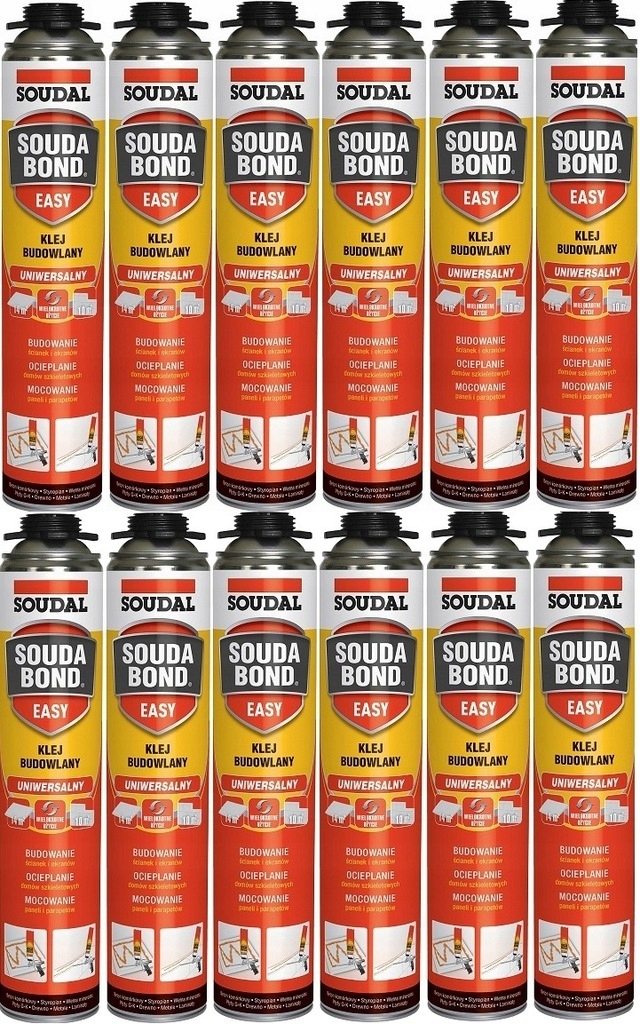 12X НАБІР SOUDAL Піно БУДІВЕЛЬНИЙ КЛЕЙ SOUDABOND EASY 750 мл