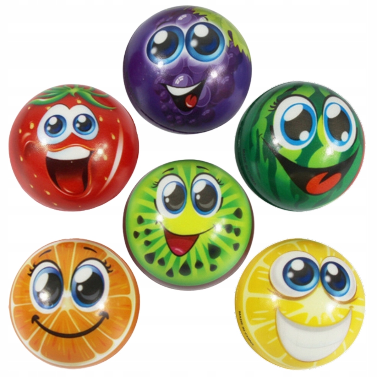12x PIŁKA PIANKOWA OWOCE KOLOR ZABAWKA SOFT ANTYSTRESOWA LEKKA MIĘKKA 7cm