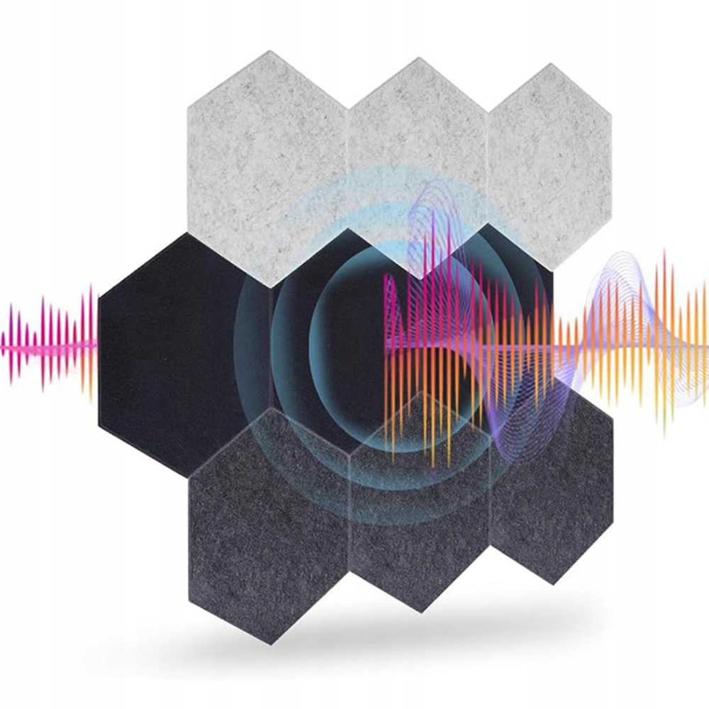 12 САМОКЛЕЙКИХ АКУСТИЧЕСКИХ ПАНЕЛЕЙ, ШЕСТИГРАННЫЕ, ЧЕРНЫЕ, ЗВУКОВЫЕ, 30×26см