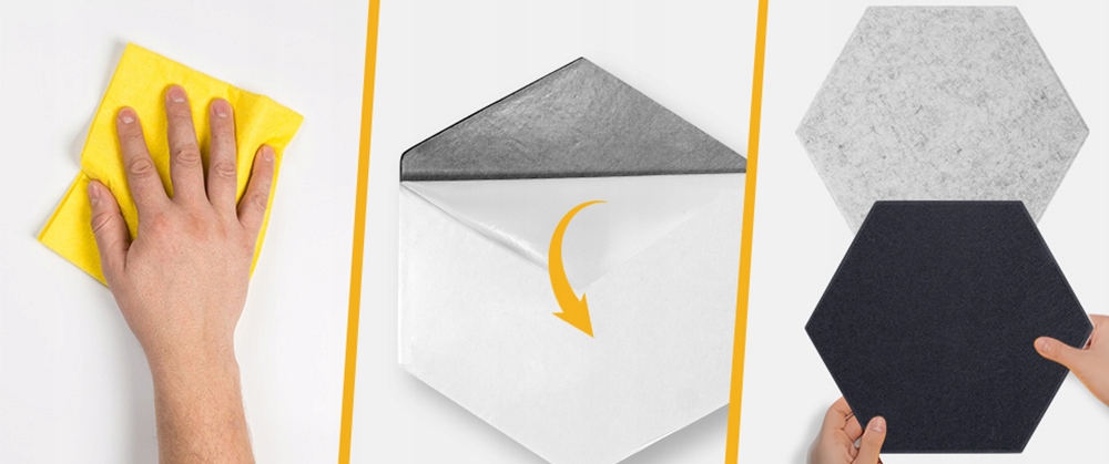 - Звукопоглощающие панели легко монтировать благодаря самоклеящейся подложке; просто снимите фольгу и приклейте панели.