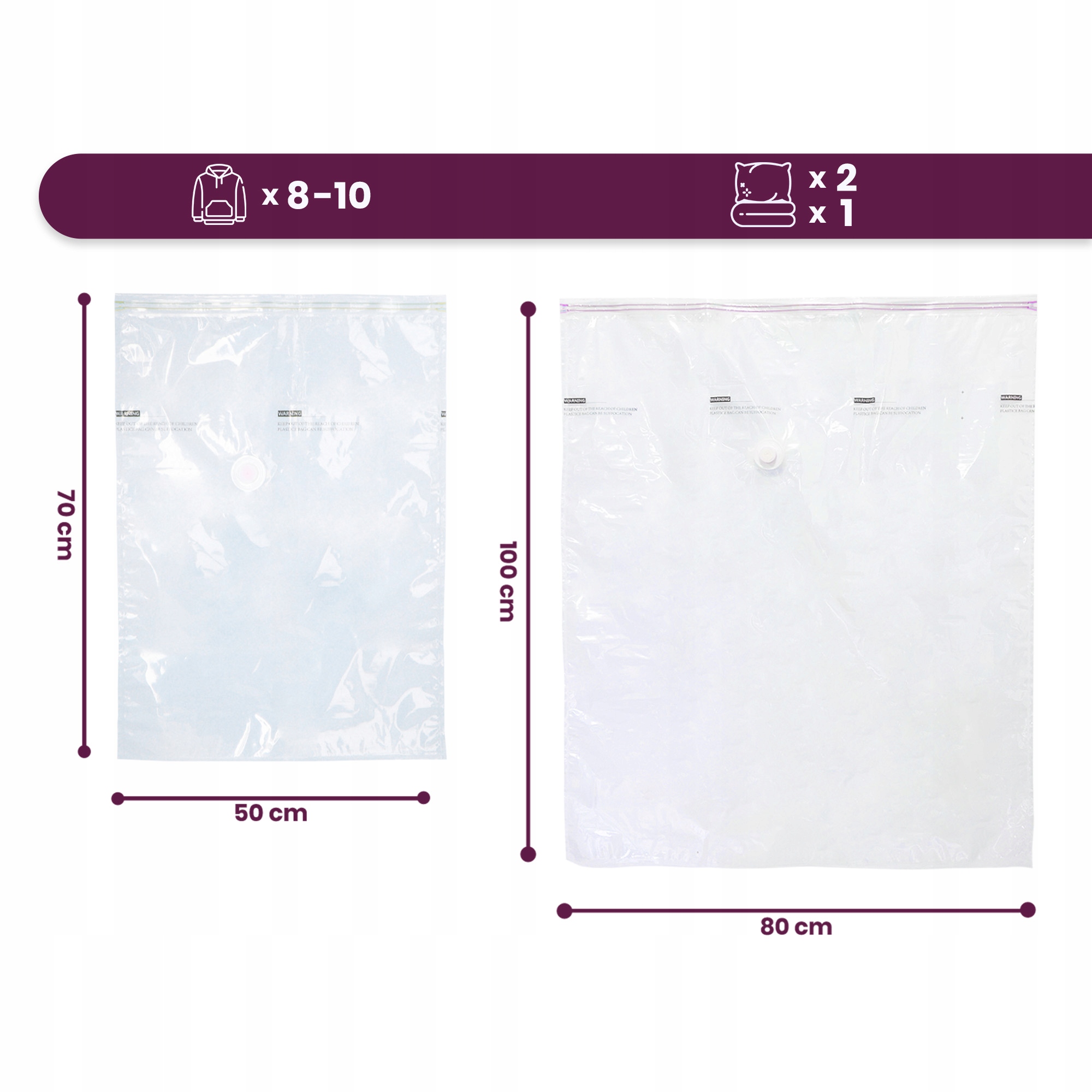 12x Вакуумні пакети ОДЯГ ПОСТІЛЬНА БІЛИЗНА 50x70 80x100 КОМПРЕСІЙНІ МІШКИ НАСОС