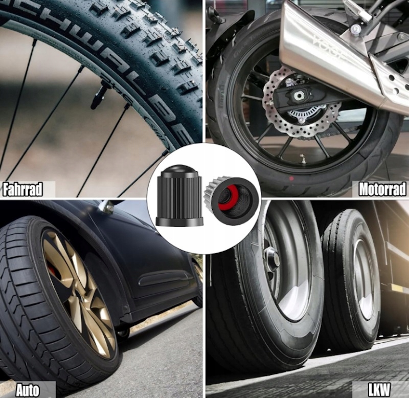 Пластиковый колпачок для популярных трубчатых и бескамерных клапанов на колесах мотоциклов, легковых автомобилях, грузовых фургонах, грузовиках, а также сельскохозяйственных машинах и велосипедах.