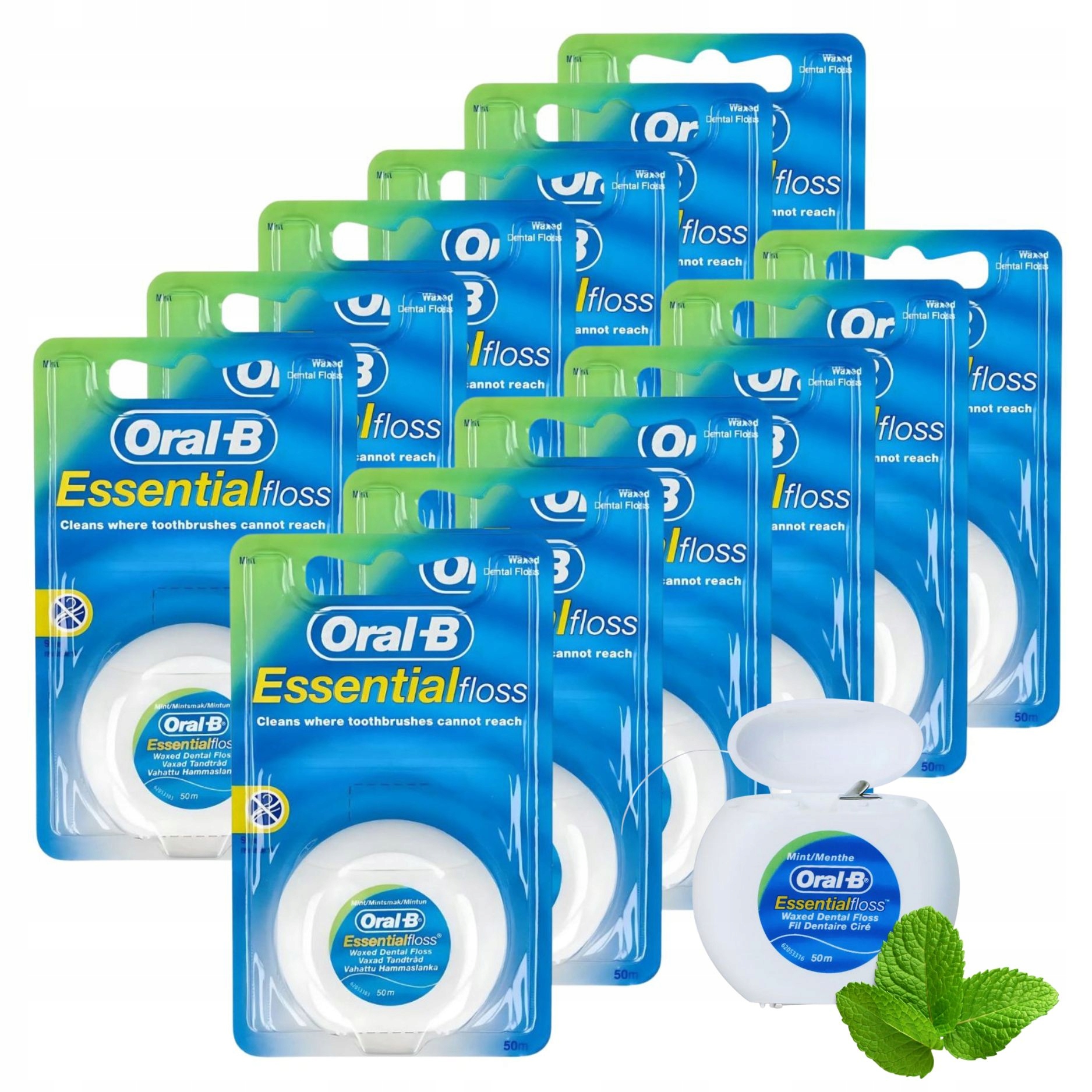 Набор из 12 упаковок вощеной зубной нити Oral-B Essential.