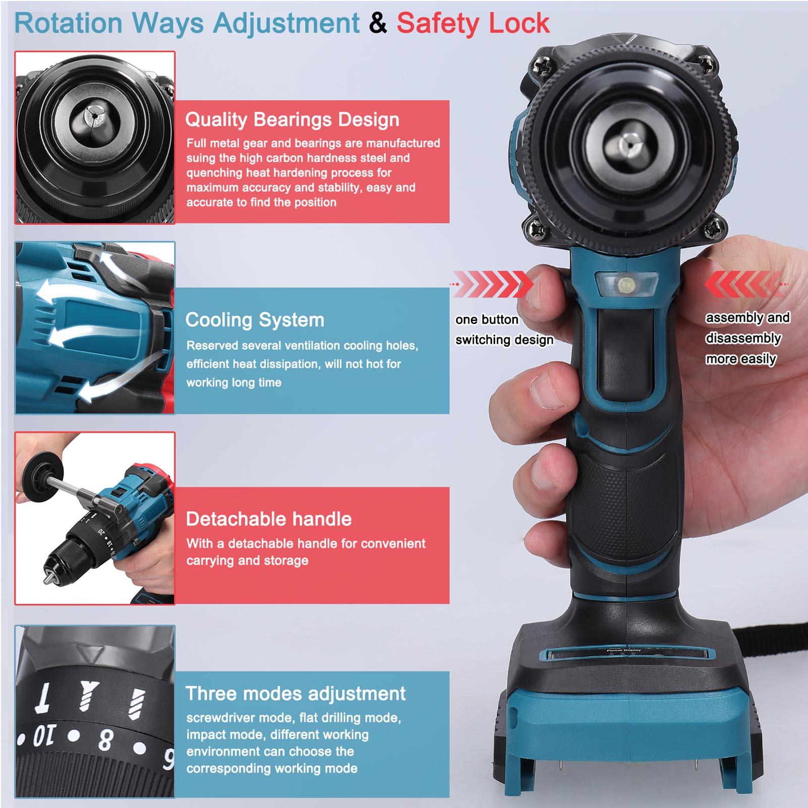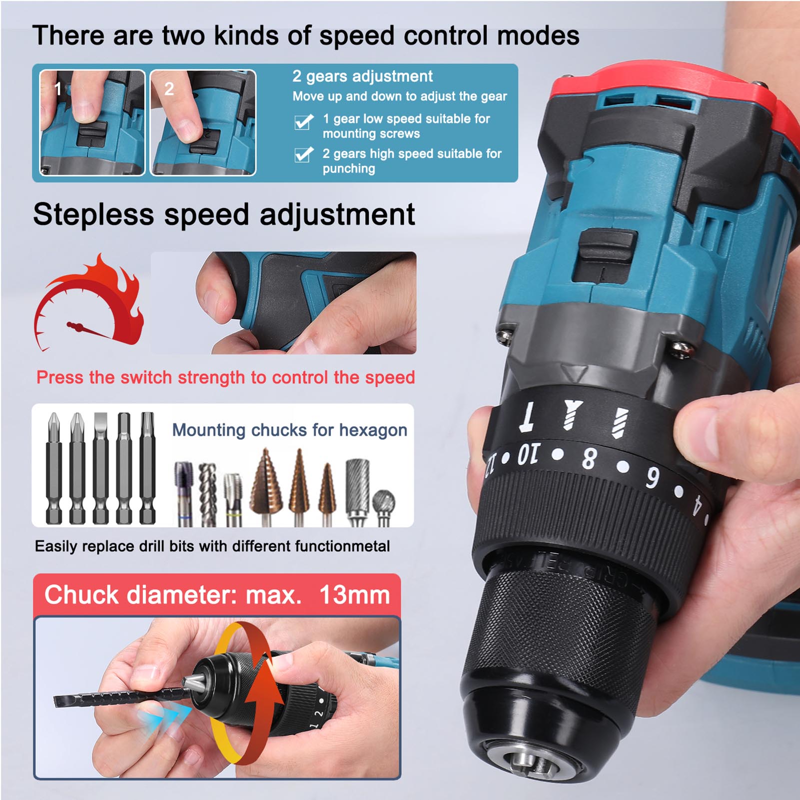 3. 2 Регулируемая скорость, низкая скорость подходит для режима отвертки и других работ, высокая скорость подходит для режима сверления и других сильных работ.