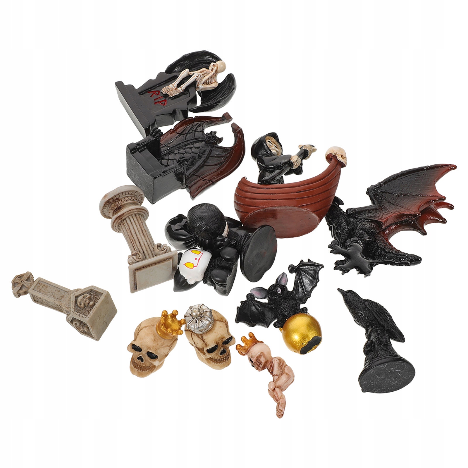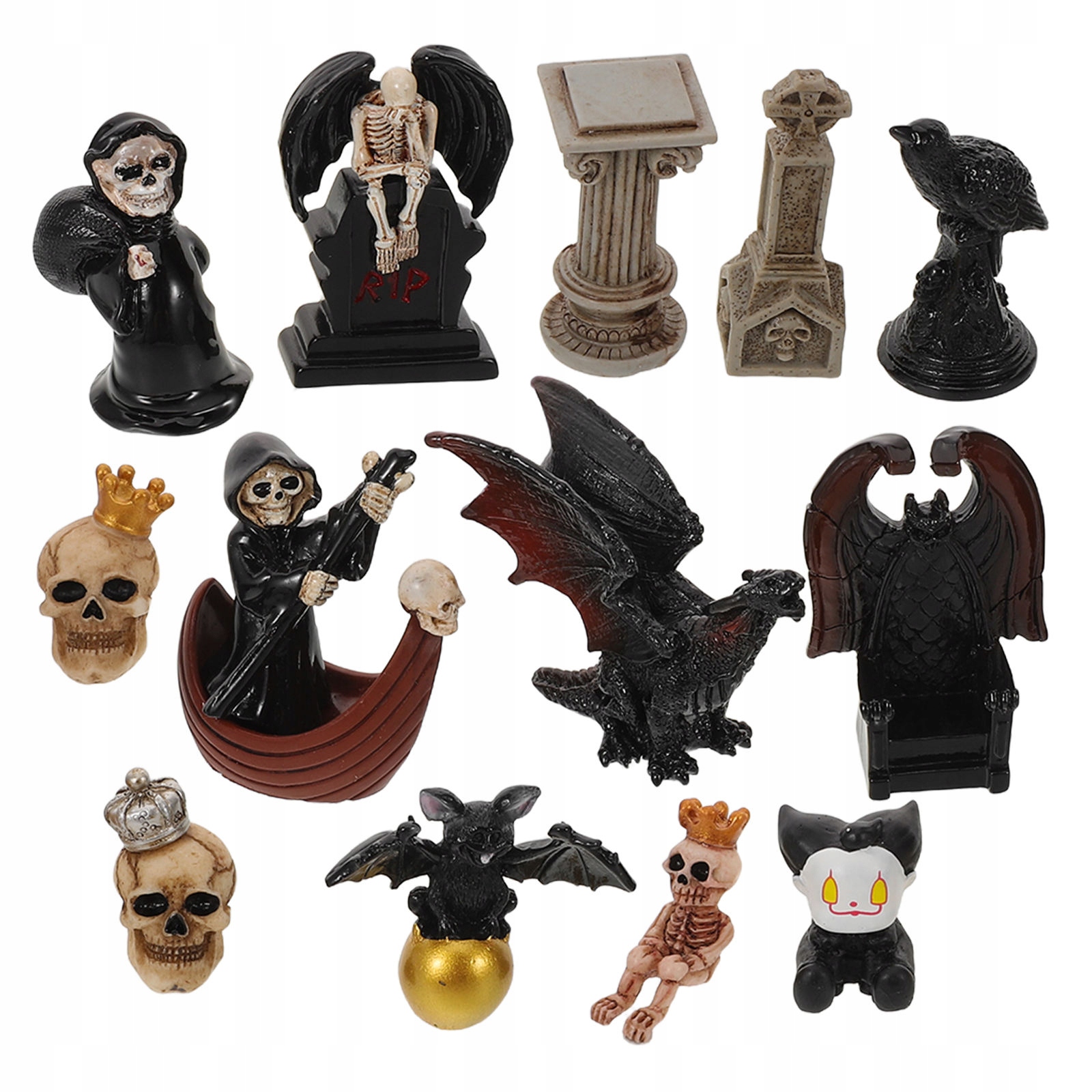 13 ШТ. МИНИАТЮРНЫЕ ФИГУРКИ ИЗ СМОЛЫ ЧЕРНЫЙ ЧЕРЕП ДЛЯ ДЕКОРА НА ХЭЛЛОУИН