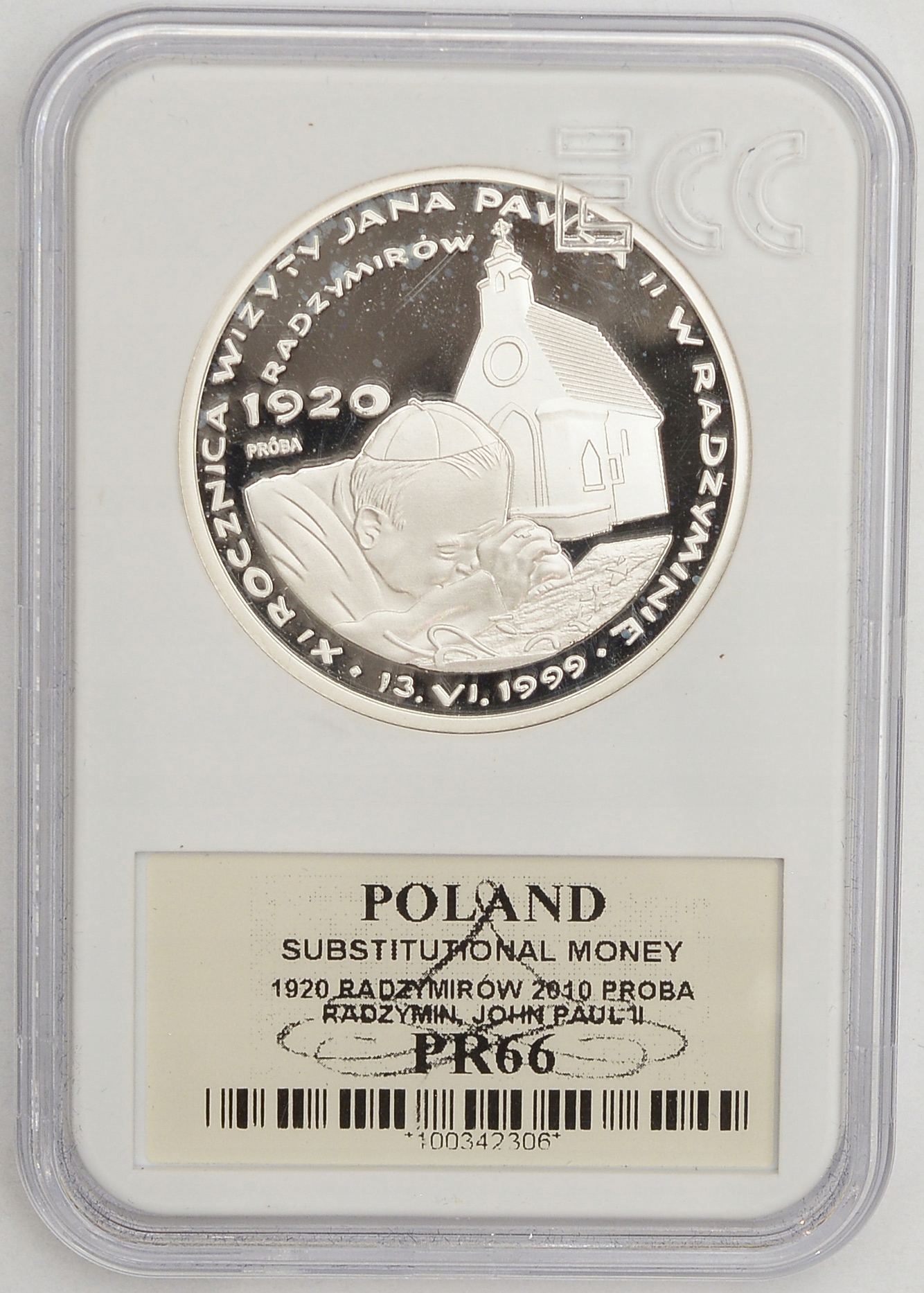 13.es.РАДЗИМІН, 1920 РАДЗИМИРІВ 2010 ІВАН ПАВЛО ІІ проба Ag GCN PR66