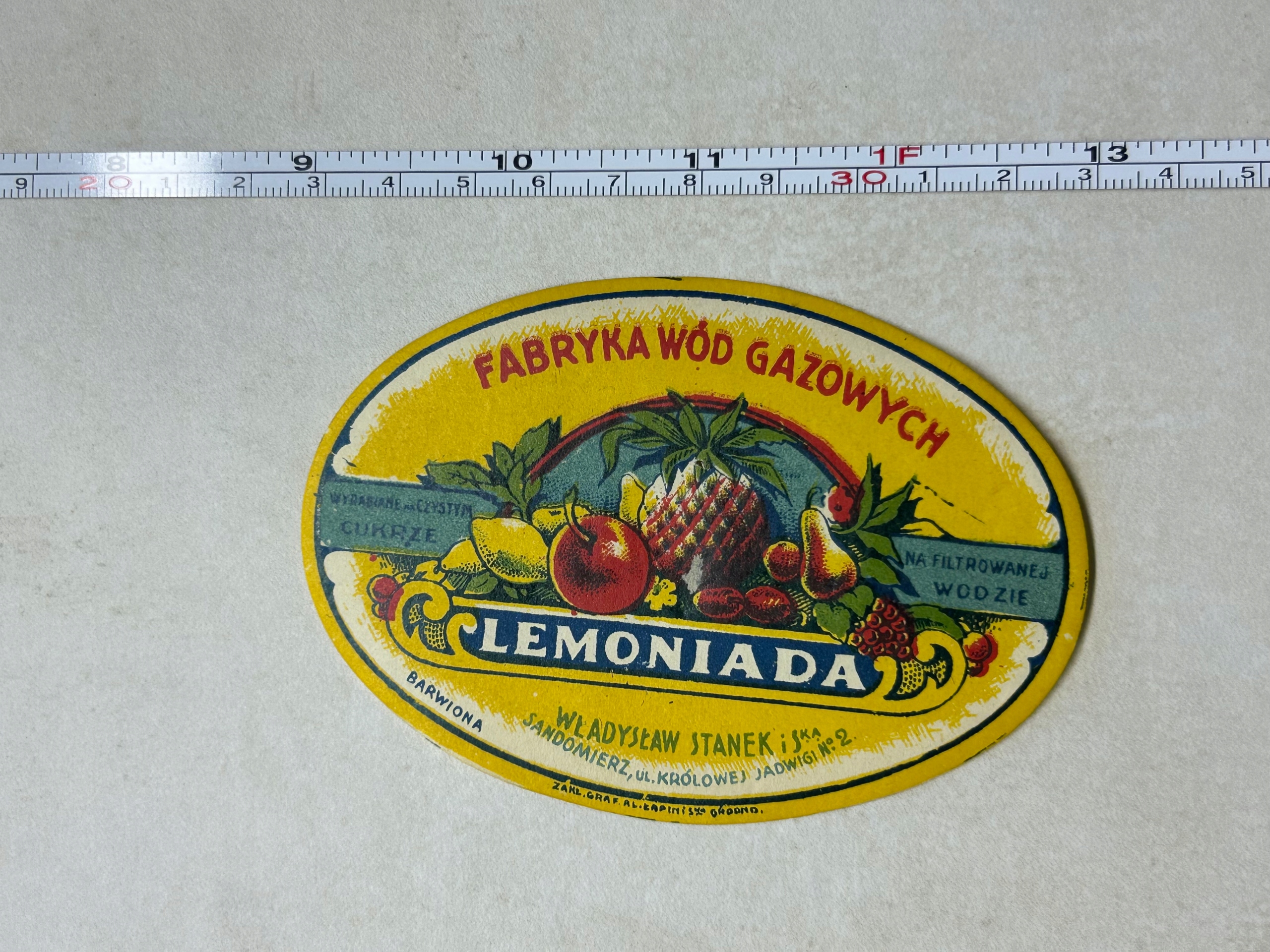 (1300) Этикетка для лимонада - Завод газированной воды - Сандомир - В.Станек