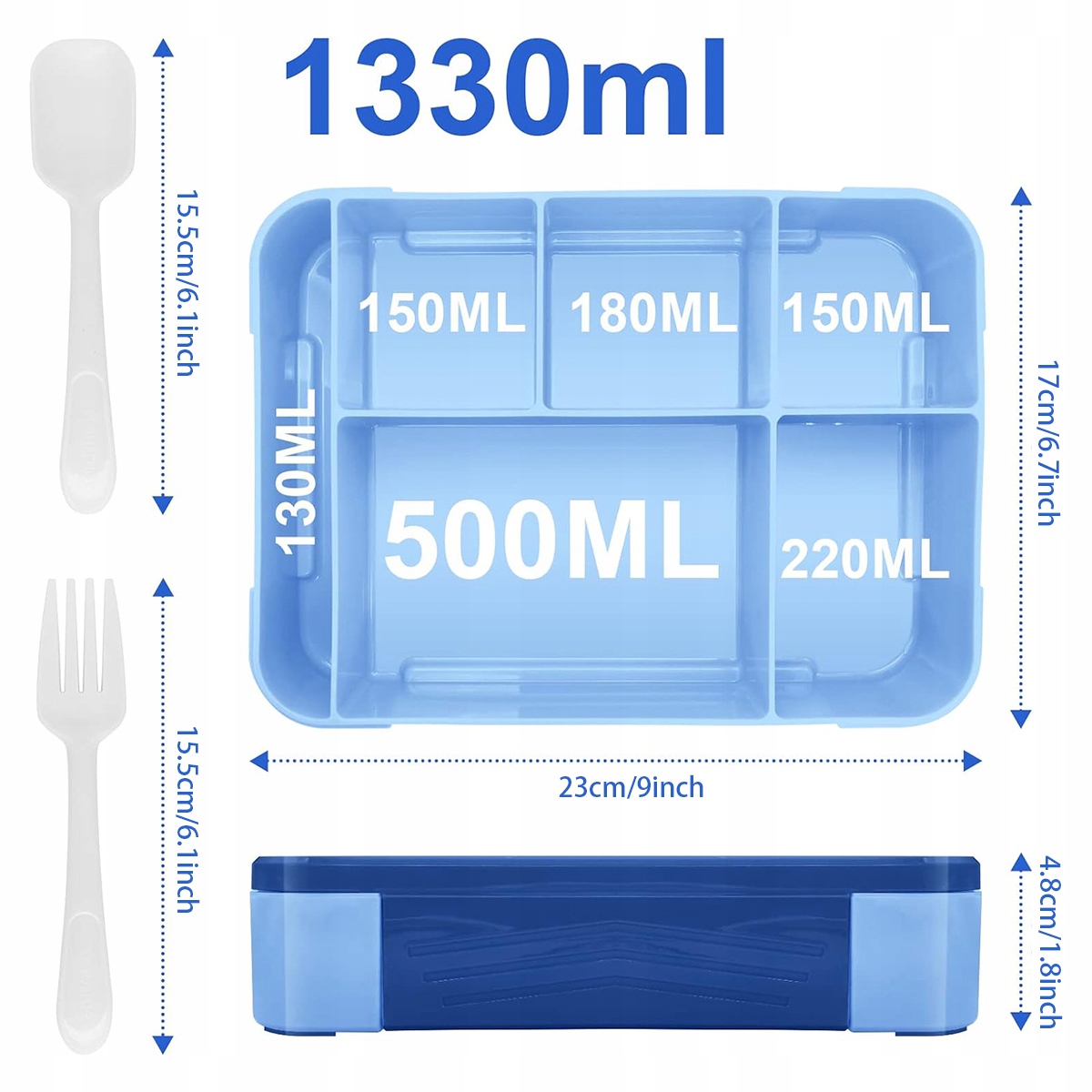 Негерметичный контейнер для обеда для детского сада – весь контейнер для обеда герметичен. Крышка детской коробочки для снеков имеет четырехточечный замок, который удерживает крышку плотно закрытой. Размеры изделия составляют примерно 23 х 17 х 4,8 см (Д х Ш х В).