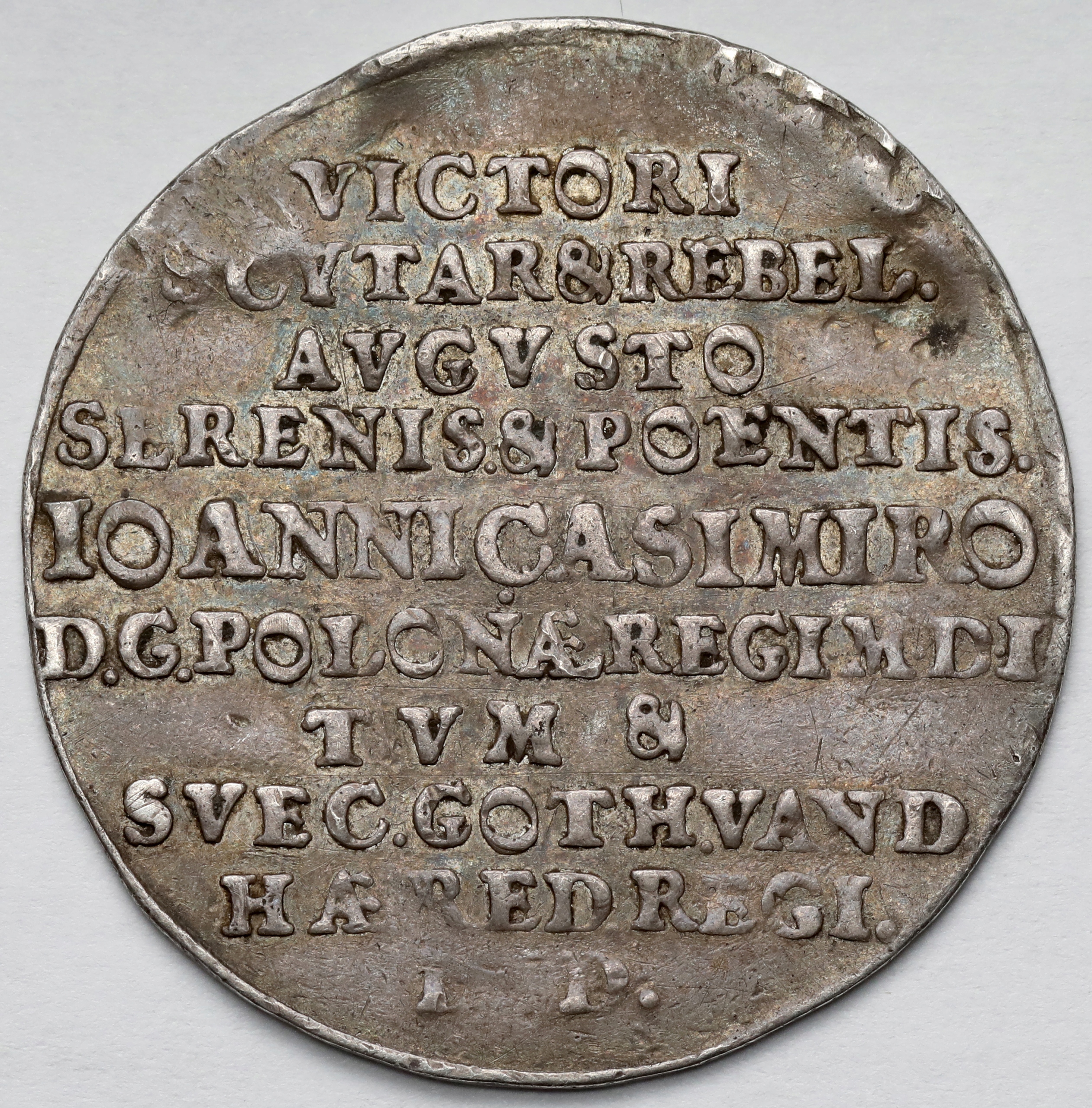 Эти слова, помещенные на реверсе этого редкого жетона/медали, являются отсылка к одному из величайших сухопутных сражений вечной Европы 17 века. Битва, произошедшая в 1651 году под Берестечеком. Бои польских войск под командованием Яна Казимира, разгромившие более крупные татаро-казачьи силы. Бой прекрасно описан в Кабинете медалей Рачинского.