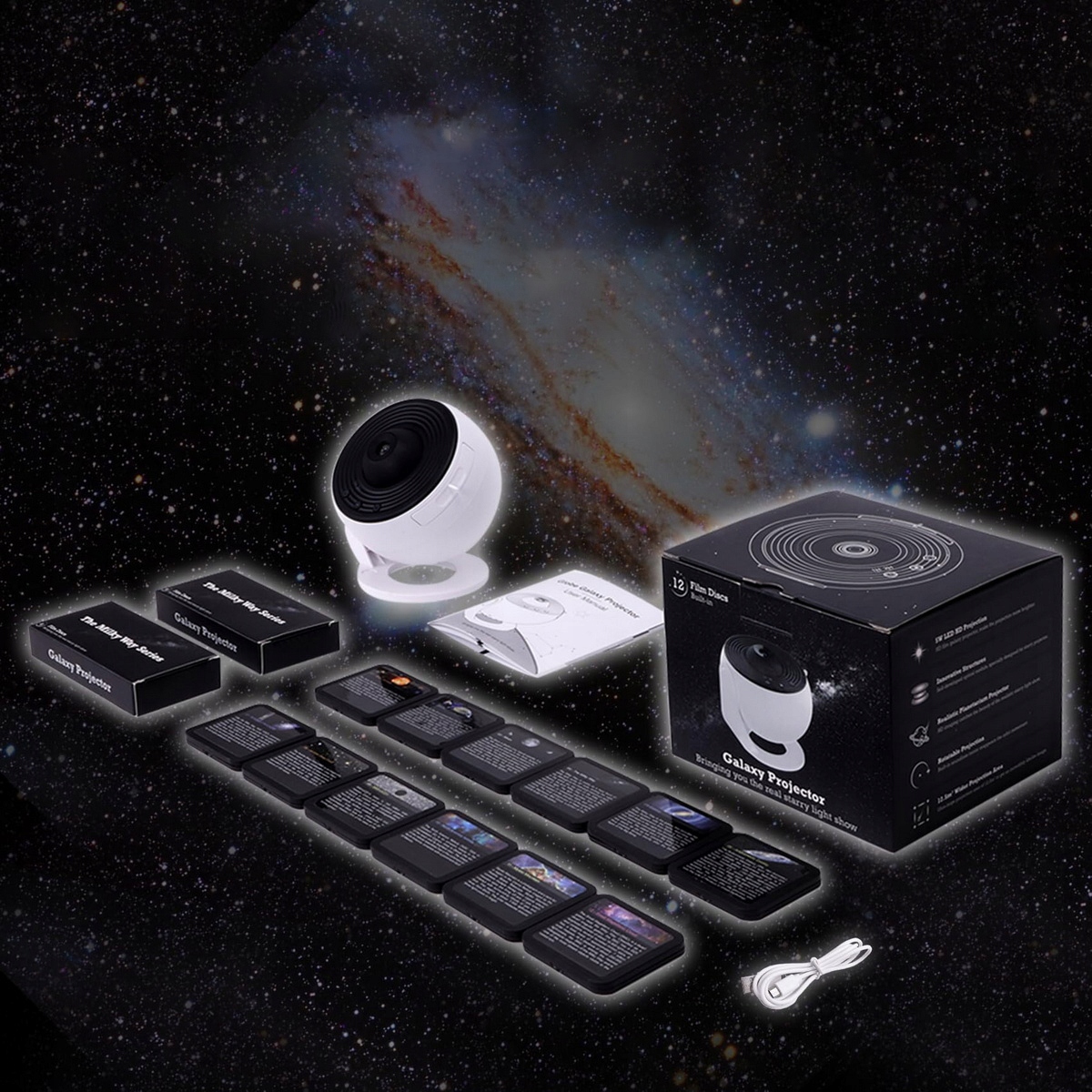 【Realistic projector Planetarium 13 in 1】 Galaxy projector for the bedroom contains 13 different HD disks with galaxies (one already installed in the nest), including the Solar System, Earth, Moon, Milky Way, Galaxy, Galaxy Andromeda, NGC4302-NGC4298, deep field of Hubble, deep field of Hubble, deep field M60-UCD1, Туманность Северной Америки, загадочные горы и небольшое облако Магеллана. Эти реалистичные диски с фильмами Galaxy предлагают фантастические впечатления от вселенной, благодаря которой они идеально подходят для украшения спальни для детей, подростков и взрослых.