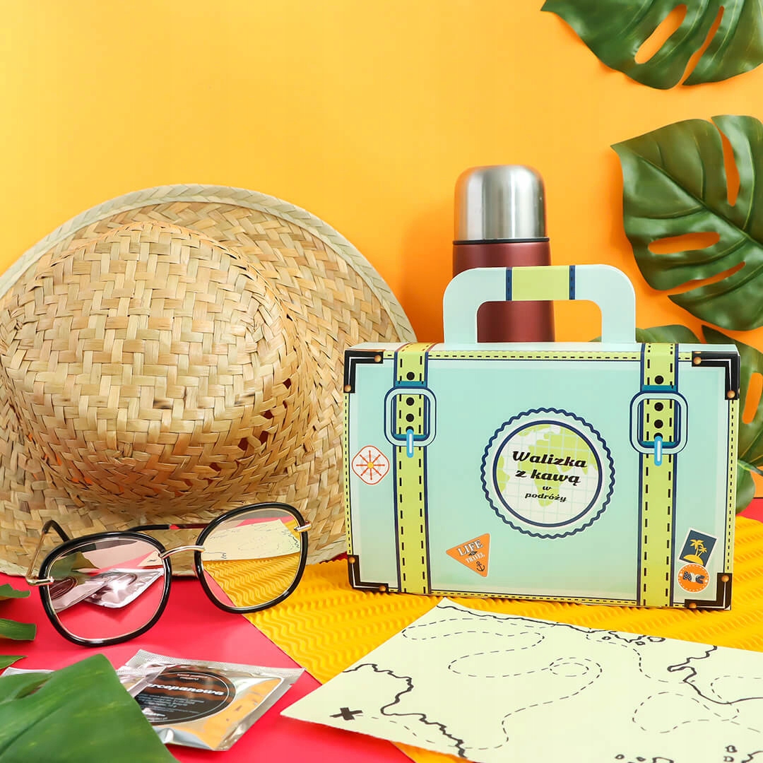 Чемодан с кофе в дорогу создан для поездок, пикников и семейных встреч на природе. Состав из 14 пакетиков молотого кофе различных вкусов с добавлением одноразовых заварочных фильтров и пакетиков тростникового сахара будет означать, что вам не придется беспокоиться о необходимых расходных материалах для приготовления кофе. Все, что вам нужно, это чашка и вода! Дополнительно, чтобы набор идеально вписался в атмосферу путешествия, все было заключено в упаковку, имитирующую дорожный чемодан. Даже находясь вдали от дома, вам не придется отказываться от любимого кофе! В жаркие дни вы можете заварить их, остудить и добавить кубики льда и молоко, чтобы получить освежающий ледяной кофе. «Теплый» вариант кофе в пакетиках идеален для гостиничного номера или даже для прохладных вечеров у камина. Наслаждайтесь восхитительным ароматным вкусом кофе, где бы вы ни находились!