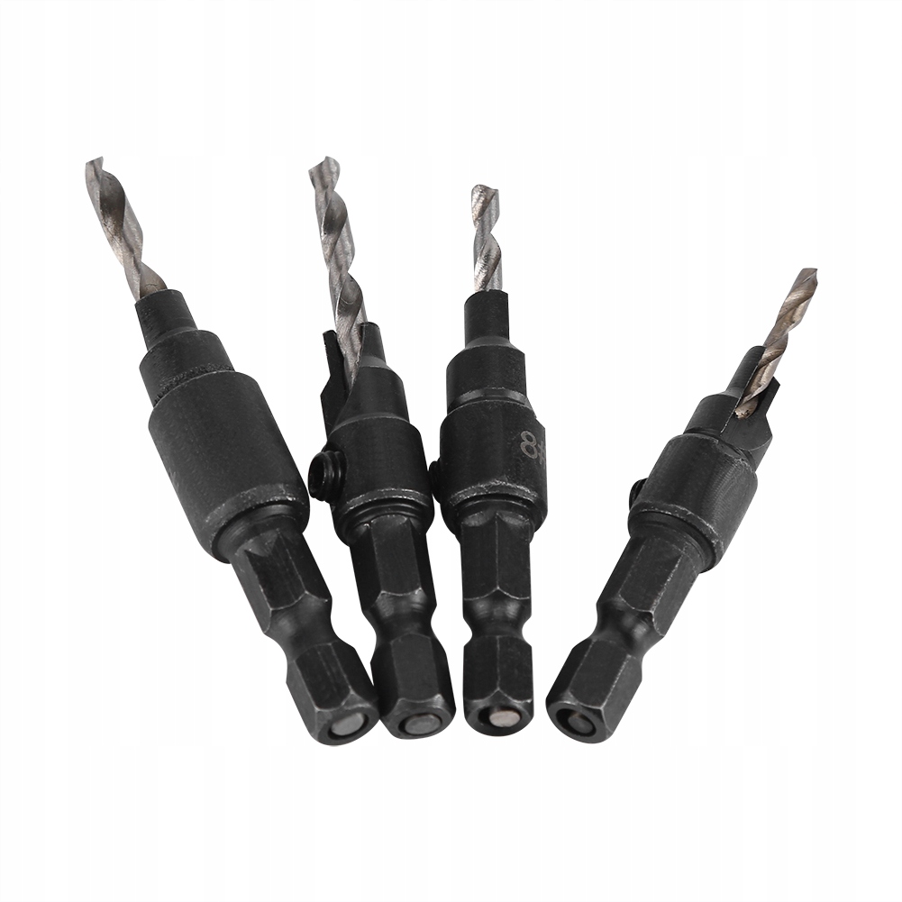 4 свёрла из быстрорежущей стали для сверления отверстий с размерами винтов №6, №8, №10 и №12.