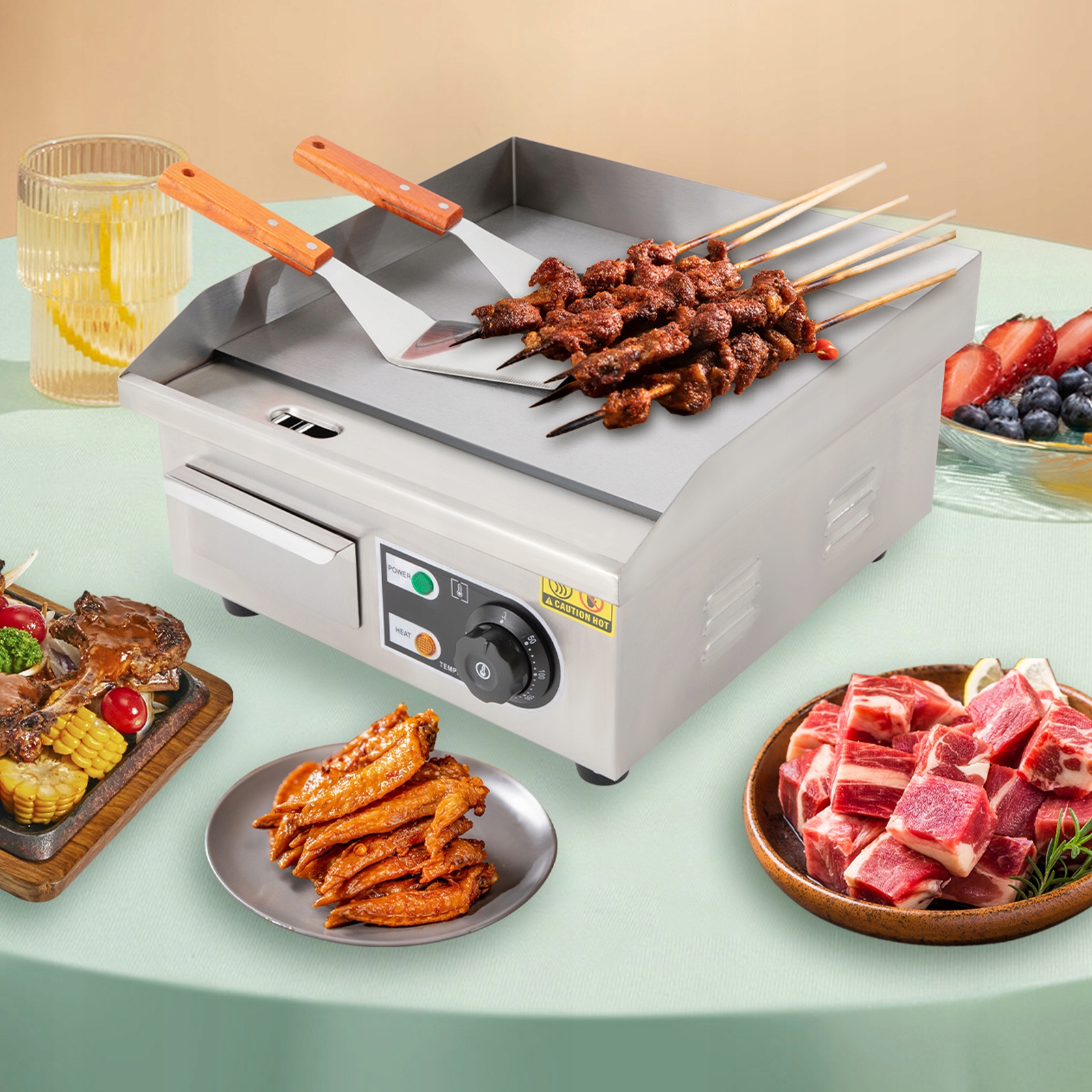 Он широко используется в придорожных ларьках, ресторанах, магазинах, столовых, супермаркетах, закусочных и т. д. для обработки блинов, бекона, запеченного сыра, яичных рулетов, стейков, пиццы, кальмаров, овощей и т. д.