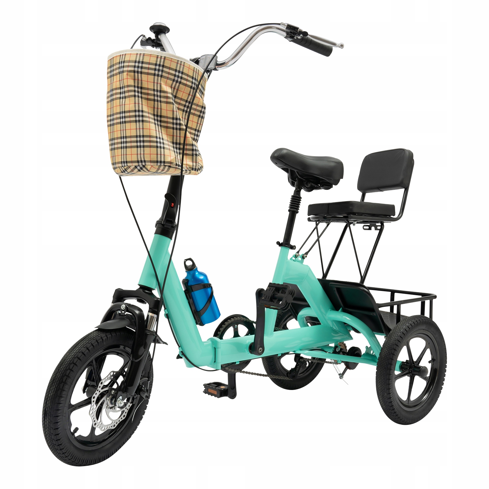 Безопасно поездка: Трехколесный велосипед имеет устойчивую треугольную конструкцию, которая не опрокидывается, что делает его подходящим для новичков и пожилых людей. Три 14-дюймовые шины из резины высочайшего качества обеспечивают превосходное сцепление и эффективную защиту от скольжения. Передние дисковые тормоза и задние масляные тормоза обеспечивают более быстрое и стабильное торможение. Звонок на трехколесном велосипеде предназначен для предупреждения прохожих и транспортных средств, что повышает безопасность вождения.