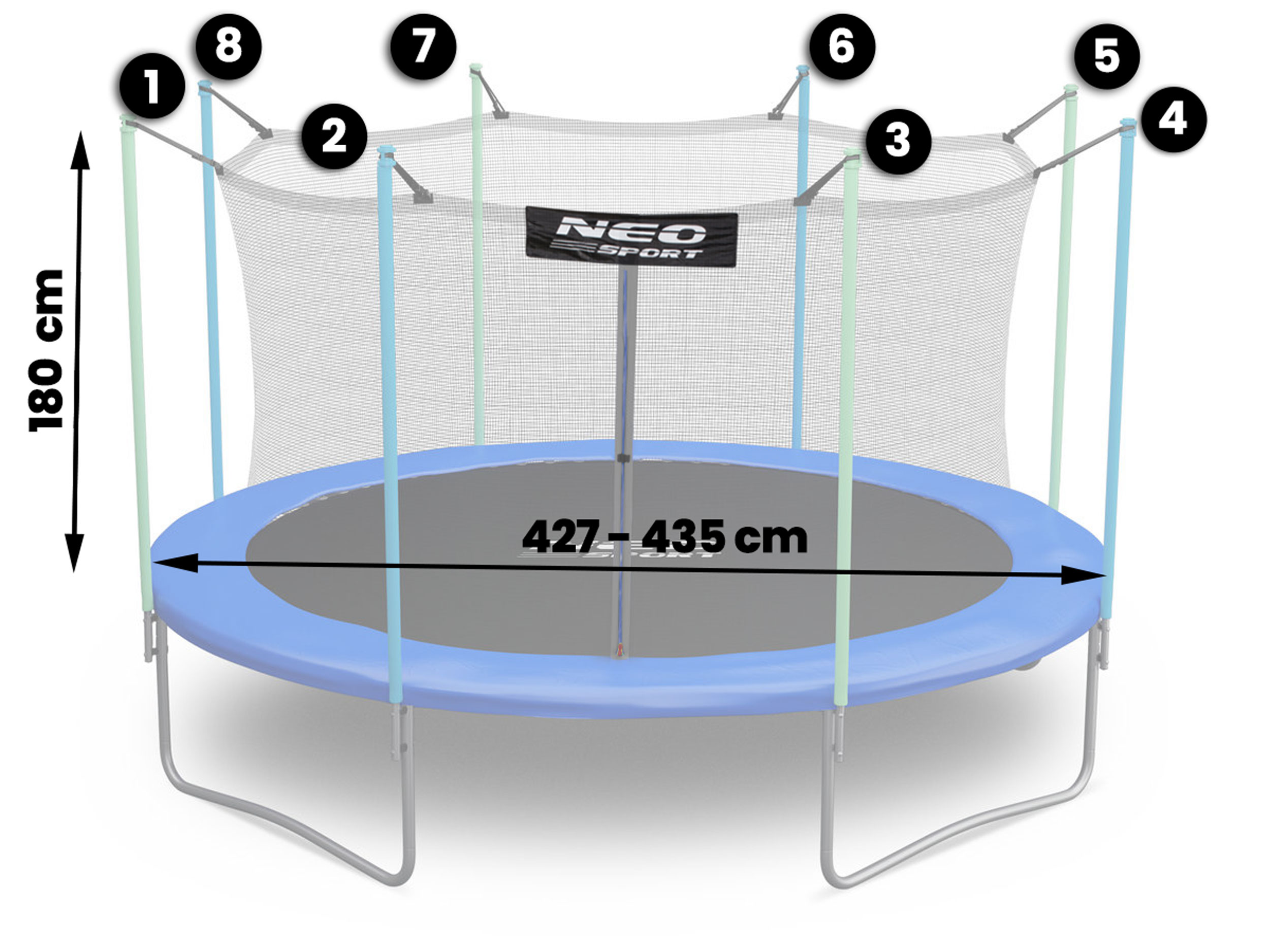 готов! Затем найдите модель сетки, которая соответствует этим двум параметрам - на этом аукционе вы покупаете внутреннюю сетку, соответствующую батутам размером 435 см, на 8 постах.