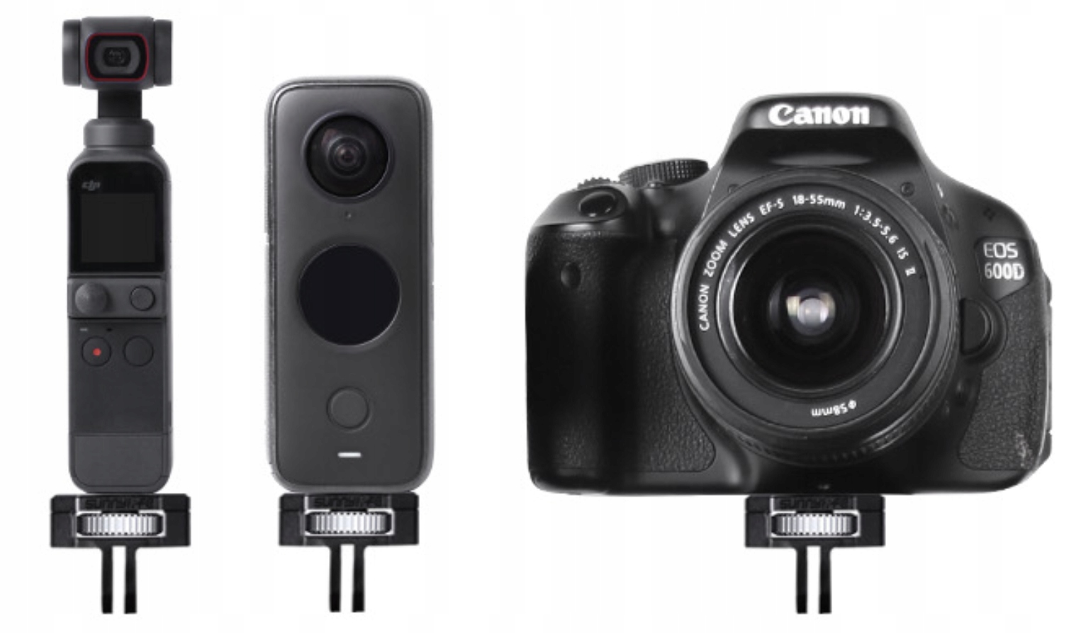 Удобно монтируйте камеру на выбранные аксессуары. Крепление Sunnylife оснащено резьбой 1/4 дюйма, что делает его совместимым с такими аксессуарами. такие устройства, как DJI Pocket 2, Insta360 ONE X2, Insta360 X4 и некоторые зеркальные камеры. Он также оснащен встроенным переходником с двумя штырями (GoPro), поэтому вы можете легко прикрепить свое оборудование, например, к креплению на руле велосипеда, держателю для запястья или нагрудному креплению. Получить Откройте для себя необычный ракурс и запишите свой лучший материал! Крепление также оснащено специальной ручкой, позволяющей поворачивать установленную на нем камеру на 360°.