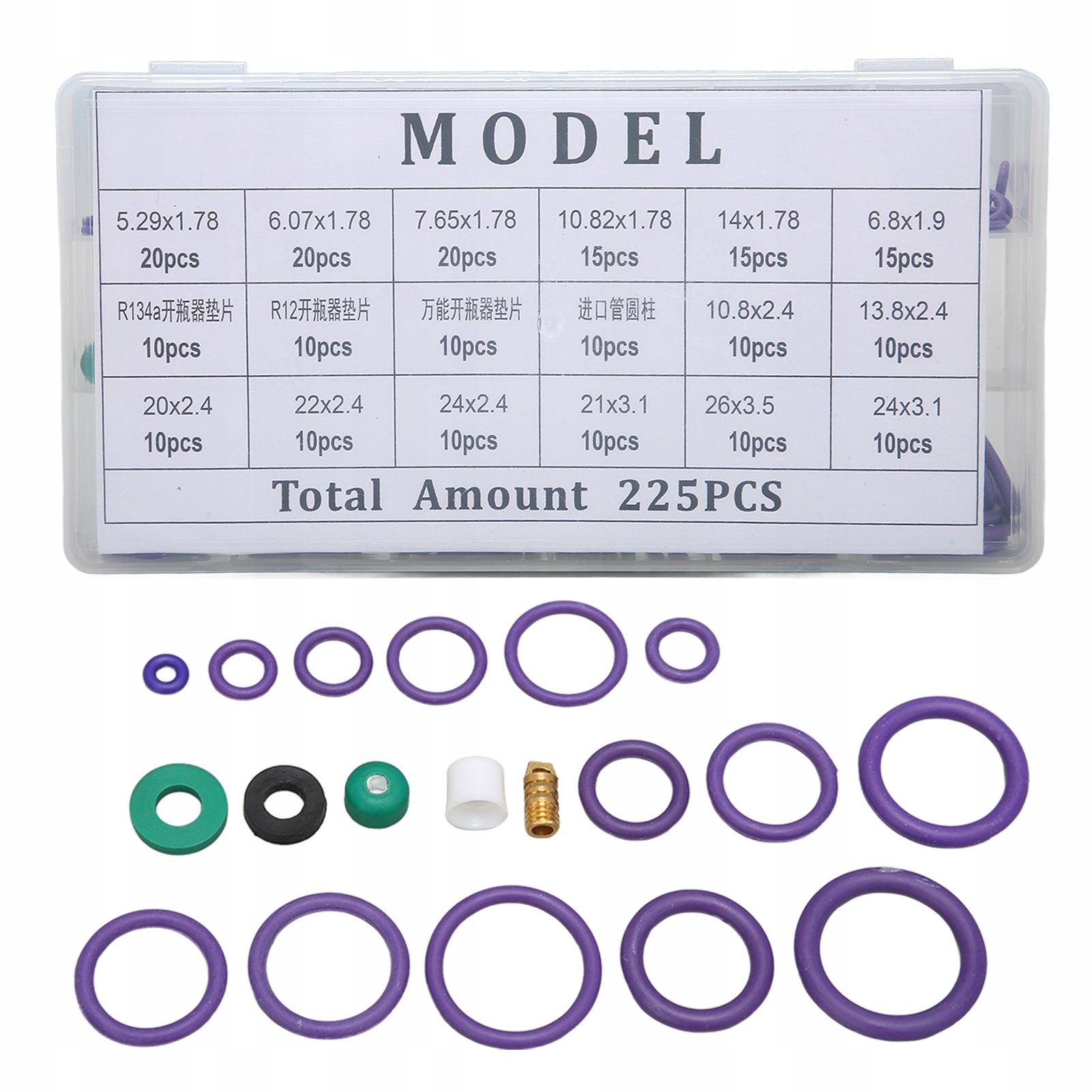 1 、 Полный набор: набор диапазона с кольцом содержит 14 размеров уплотнений с кольцом и 4 типами прокладки и проставки, 225 штук в общей сложности в коробке для хранения в порядок, более удобный в использовании. Окна, насосы, нагрузка -нагружающий ролик и другие области.