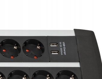 Полоска имеет до двух USB-разъемов с функцией зарядки. Благодаря этому вместо того, чтобы подключать все зарядное устройство телефона к стандартной розетке, занимая место для других устройств, достаточно лишь подключить кабель к USB-порту, и вы сможете без проблем заряжать свой телефон.< /п>