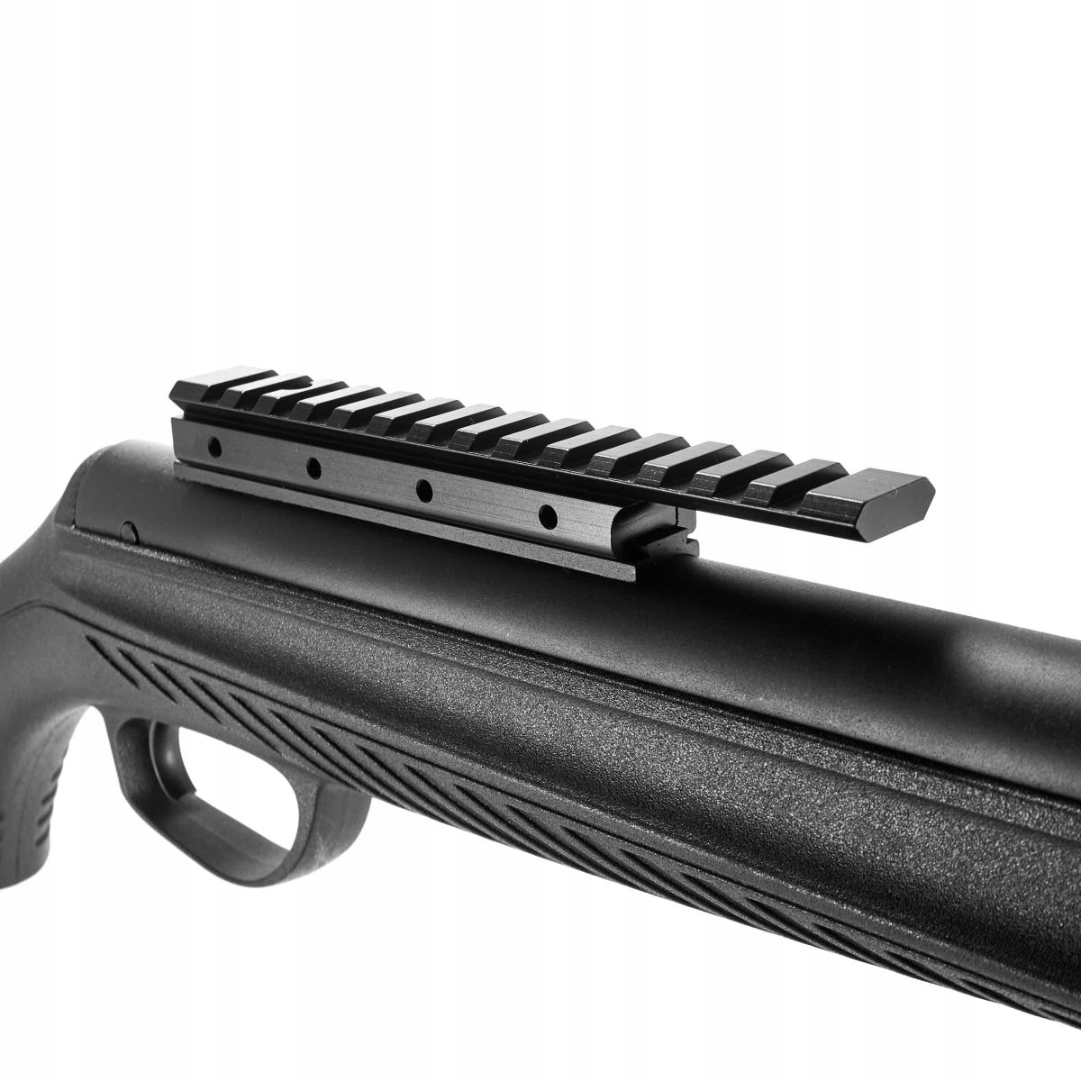 Монтажные направляющие с 14 слотами позволяют запускать и стрелять. Основание крепления соединено с планкой «ласточкин хвост» диаметром 11 мм, а верхняя часть — с планкой Пикатинни с 14 слотами.
