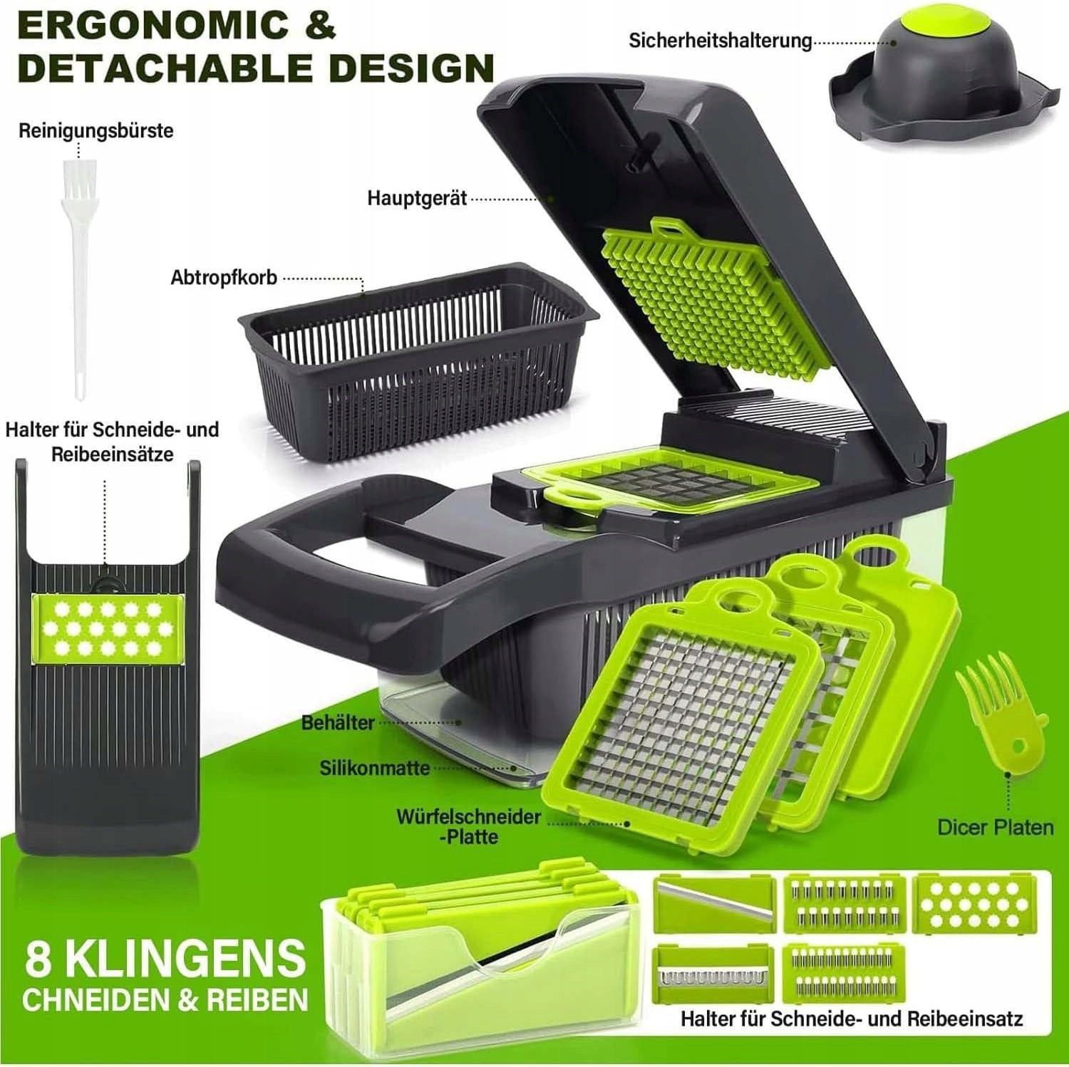 Овощерезка 14 в 1 из нержавеющей стали - Набор нарезка, кубики с корзиной для сбора капель
